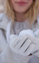 Gloves made of wool and cashmere. The product is decorated with narrow cuffs and a branded tag.