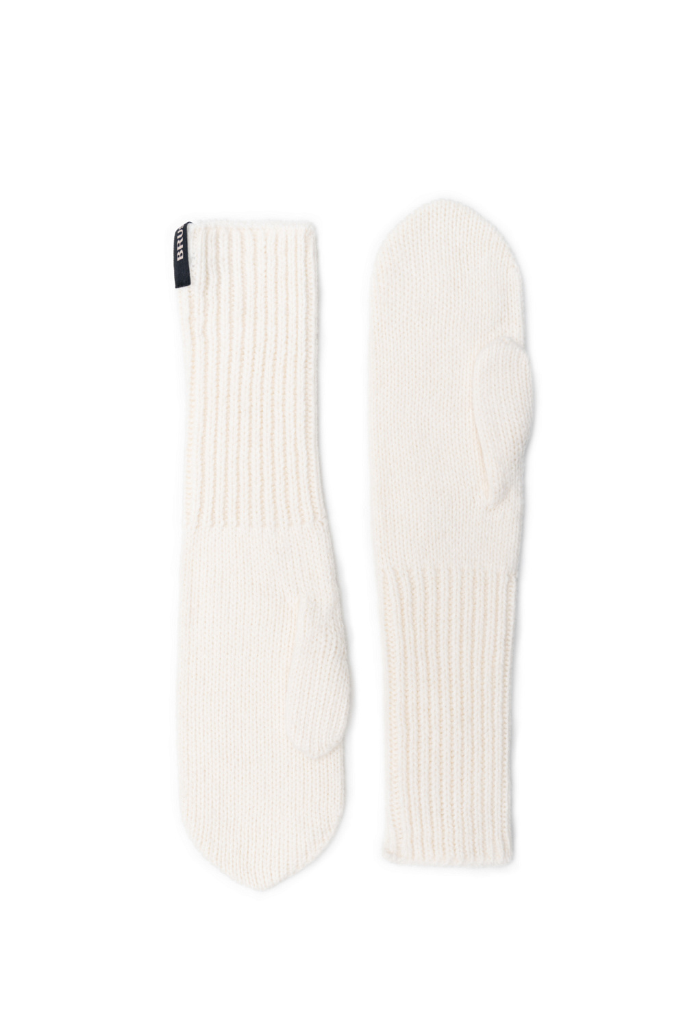 Knitted alpaca wool mittens with a branded label
