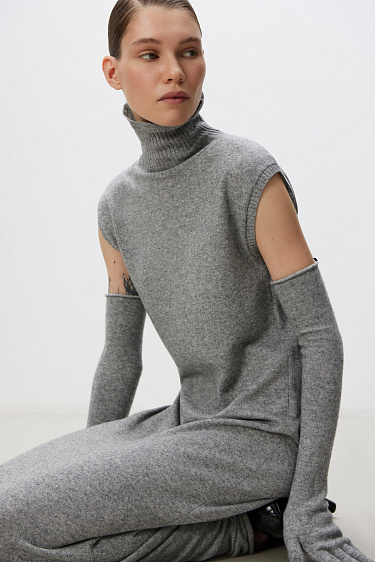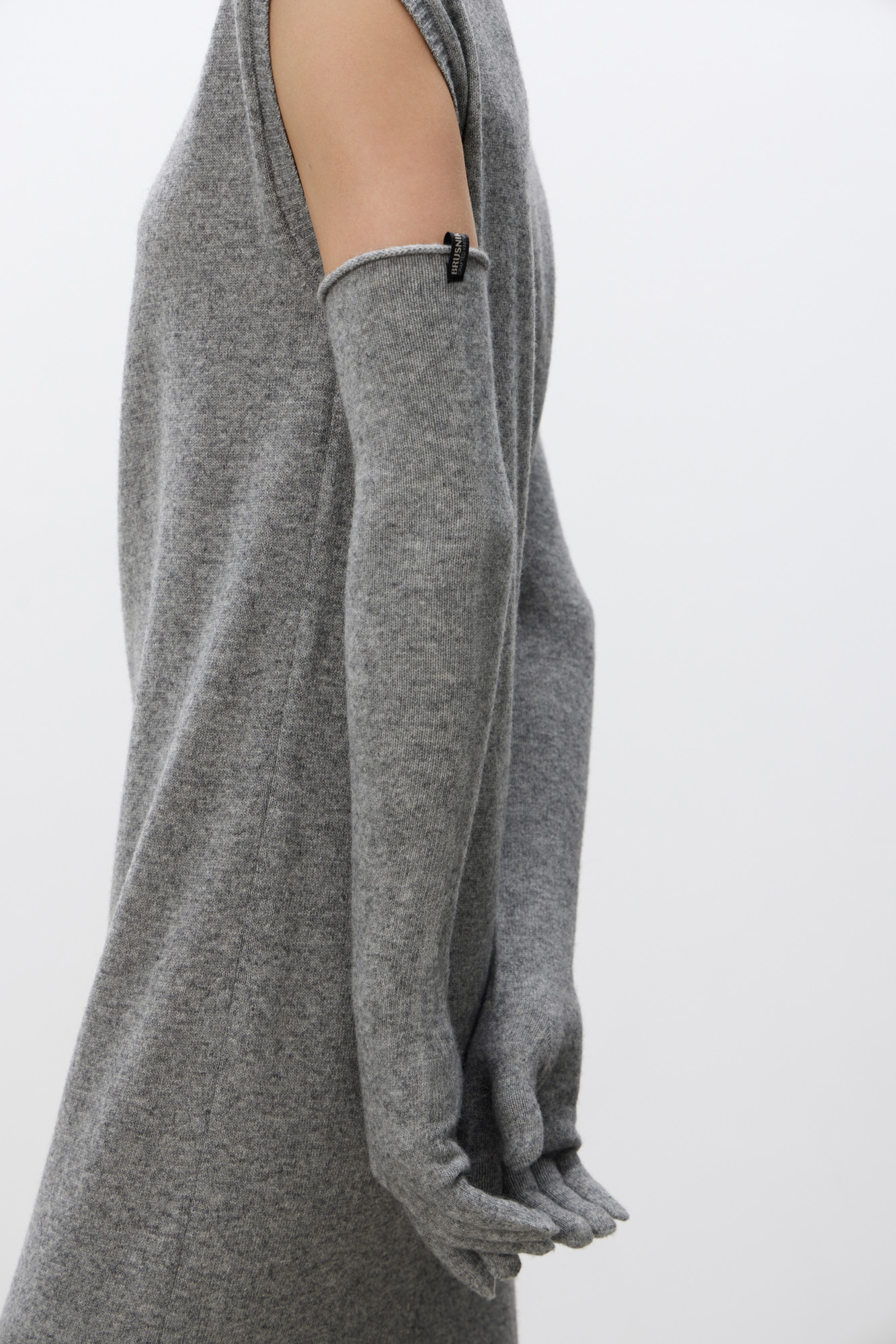 Knitted long gloves made of a wool blend with the addition of cashmere.