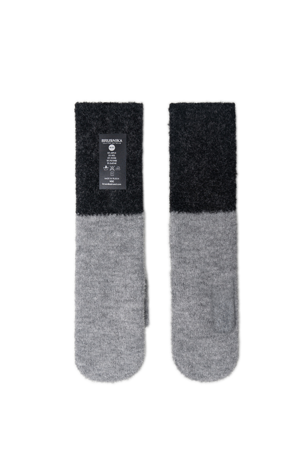 Knitted wool blend mittens with sticker label