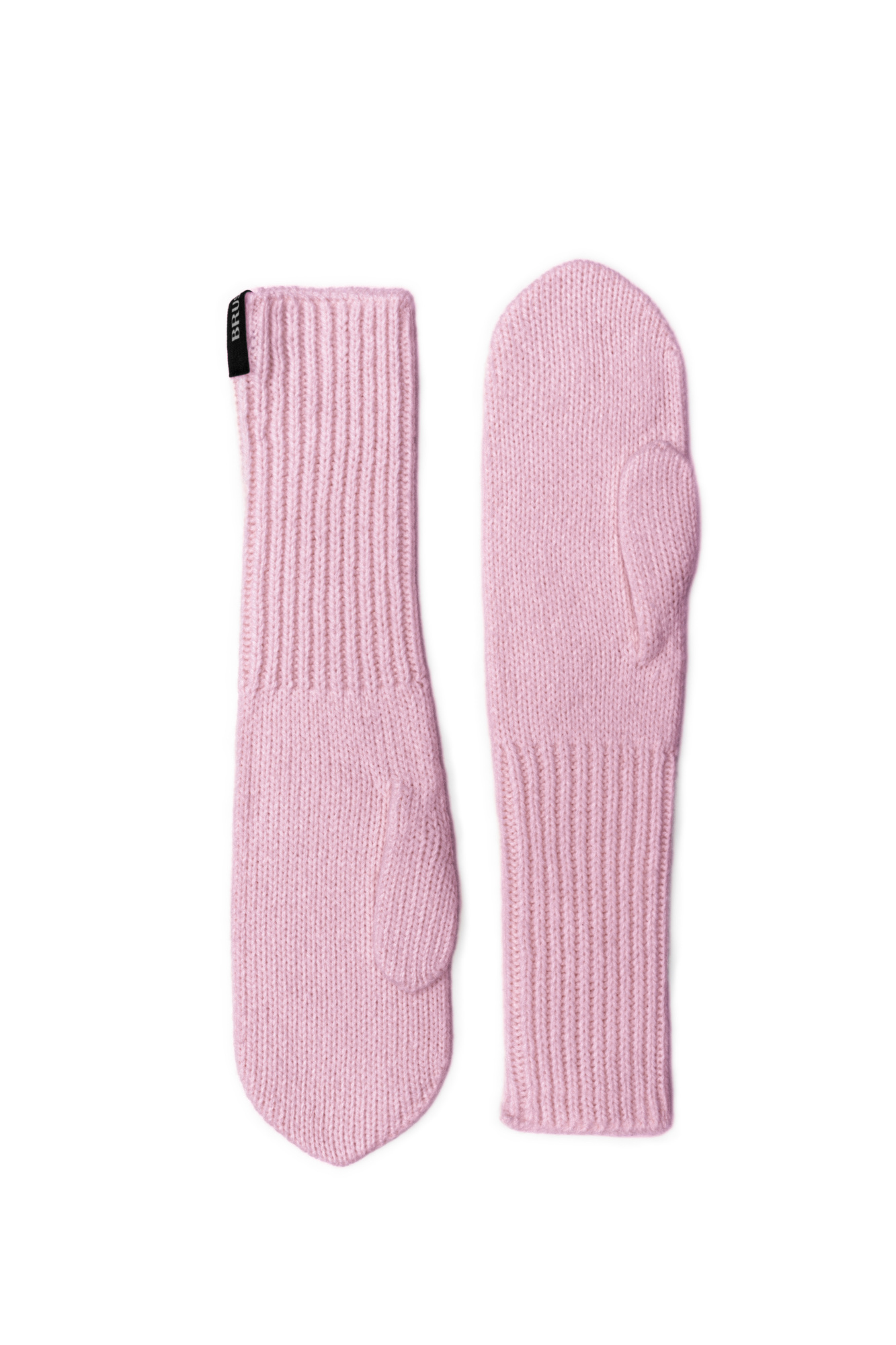 Knitted alpaca wool mittens with a branded label