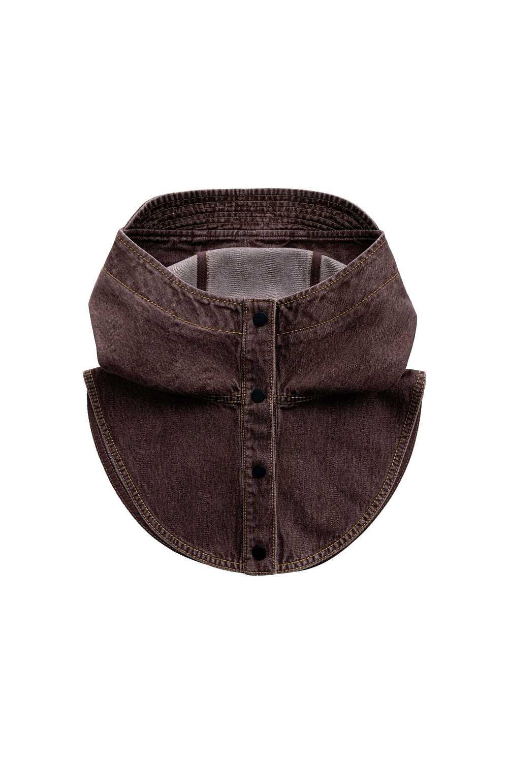 Denim hood made of 100% cotton. The product is made with a branded label on the back and a button closure.