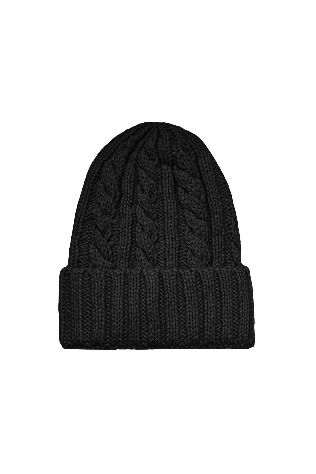 Alpaca wool cable knit hat with a wide turn-up at the hem.