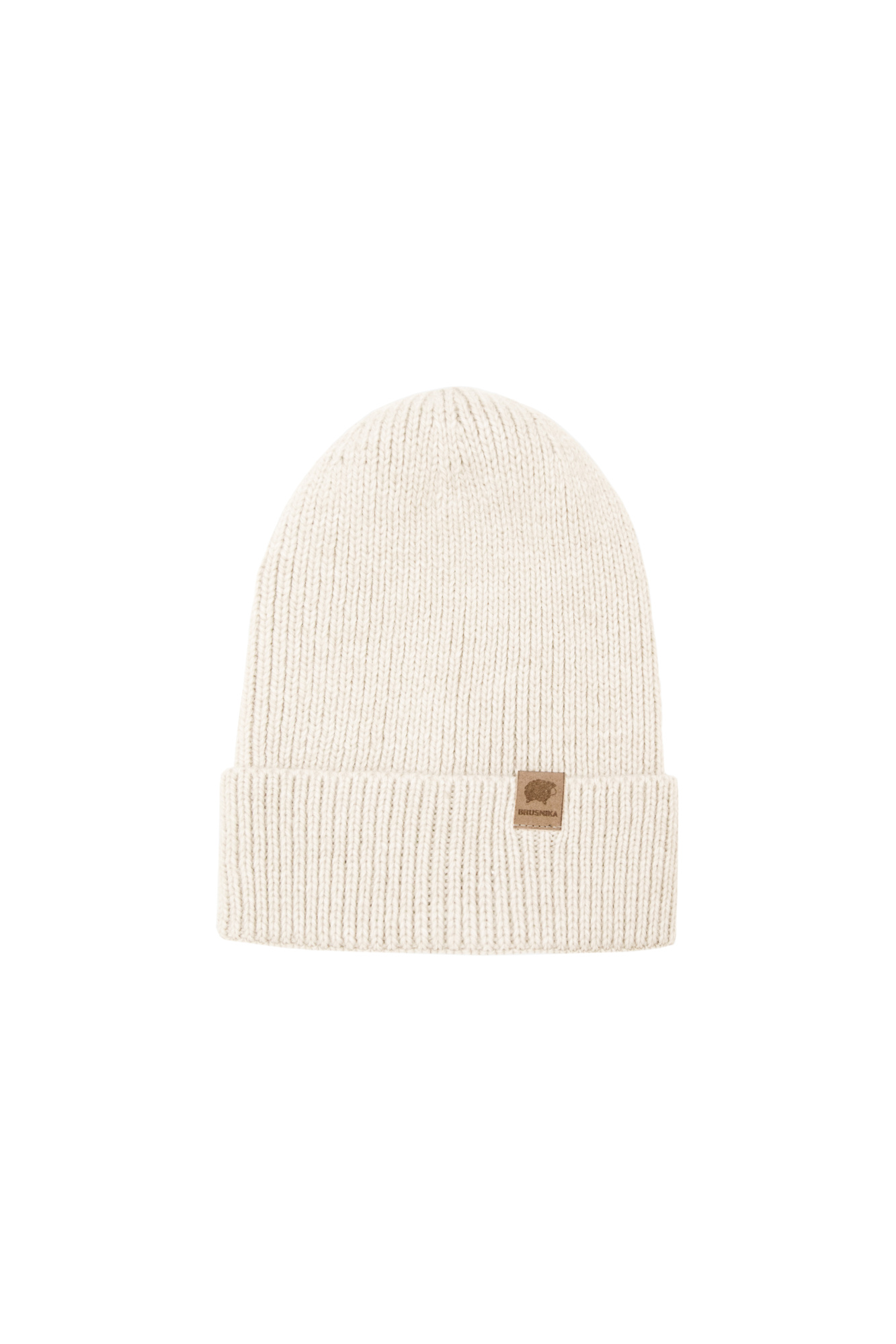 Alpaca wool blend rib-knit hat with a turn-up at the hem.