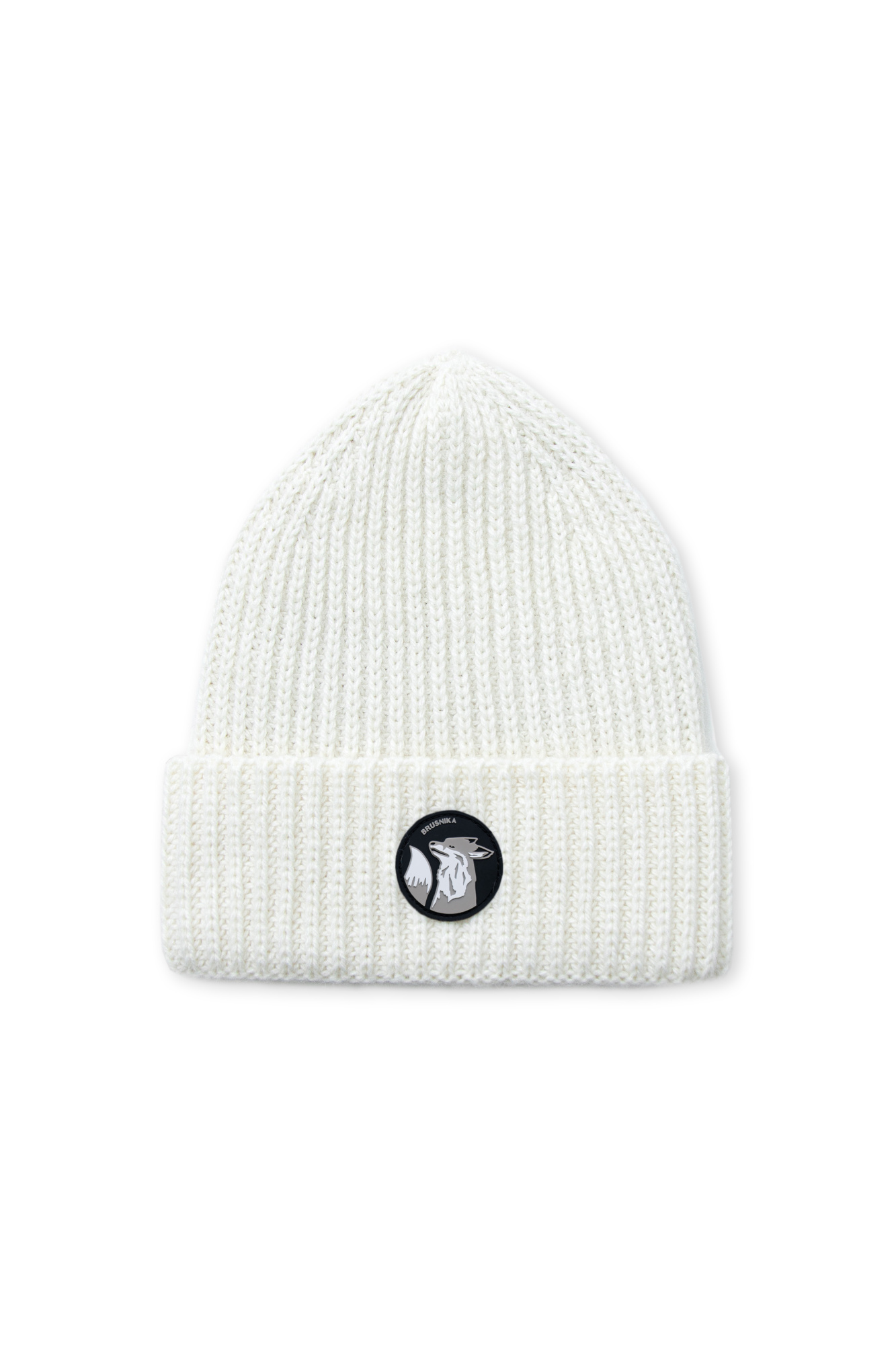 Alpaca wool hat with foldover cuff and appliqué at the front