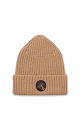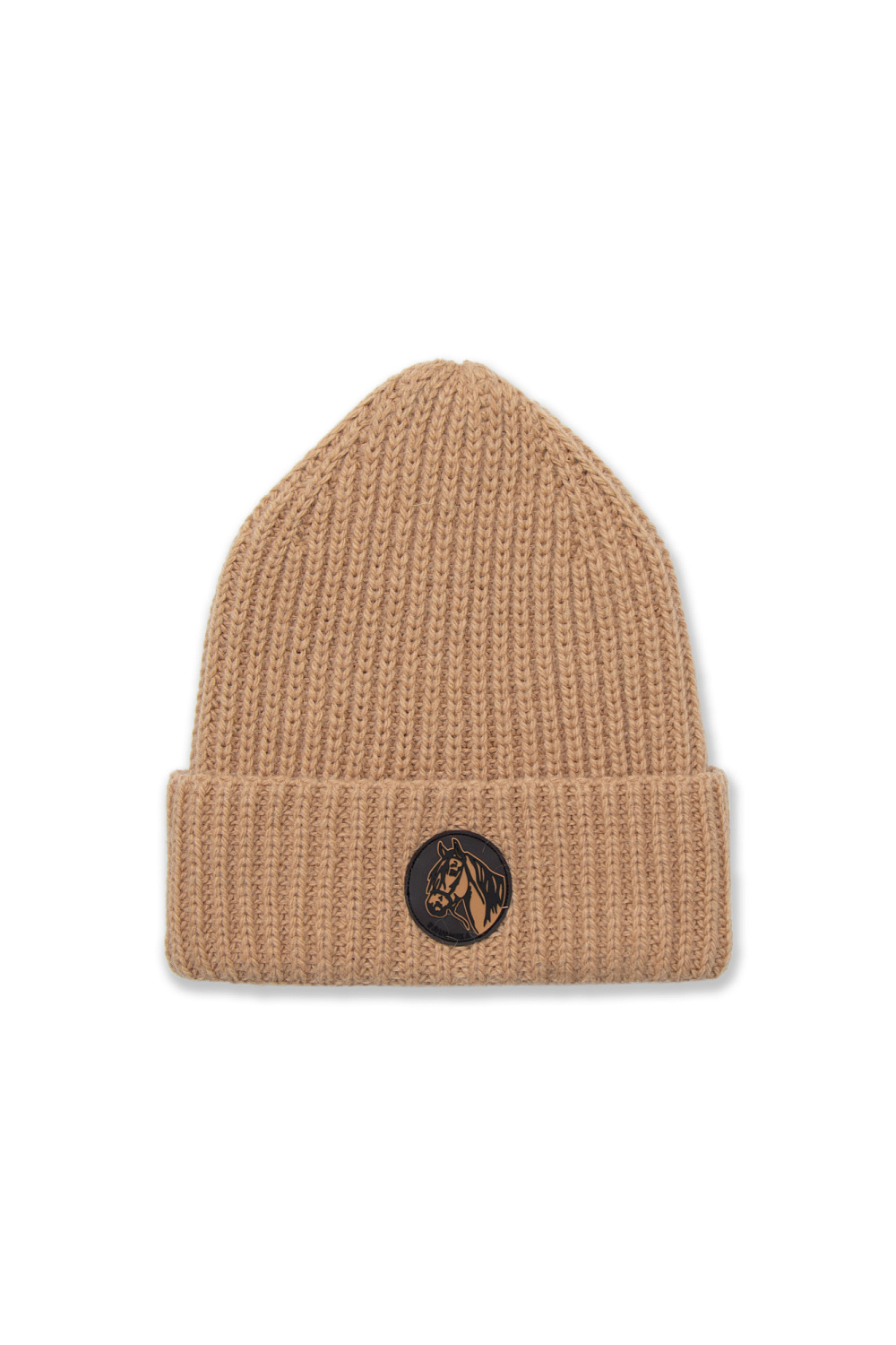 Alpaca wool hat with foldover cuff and appliqué at the front