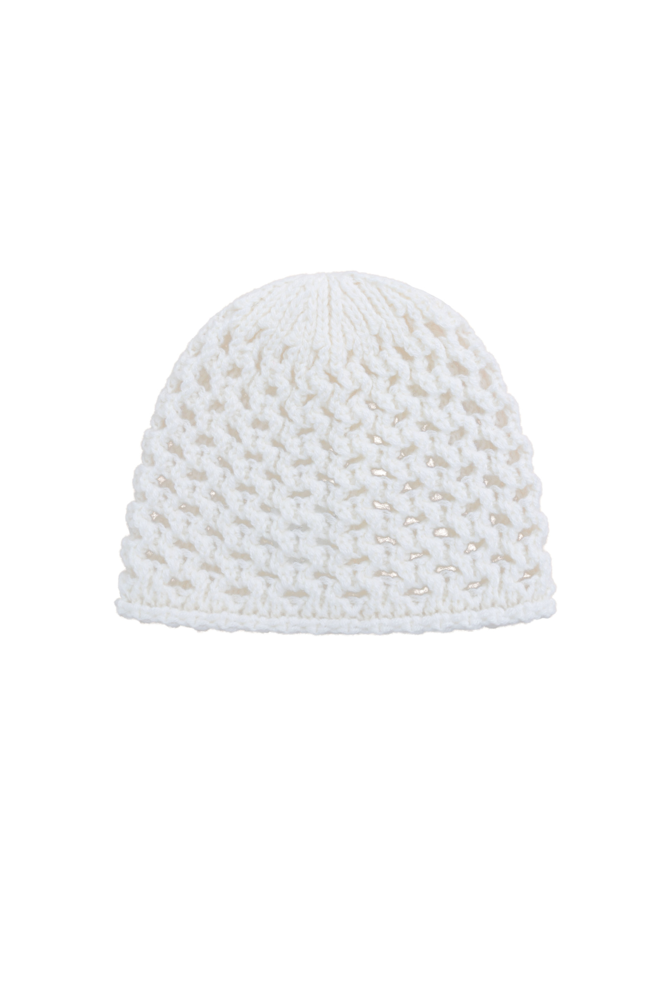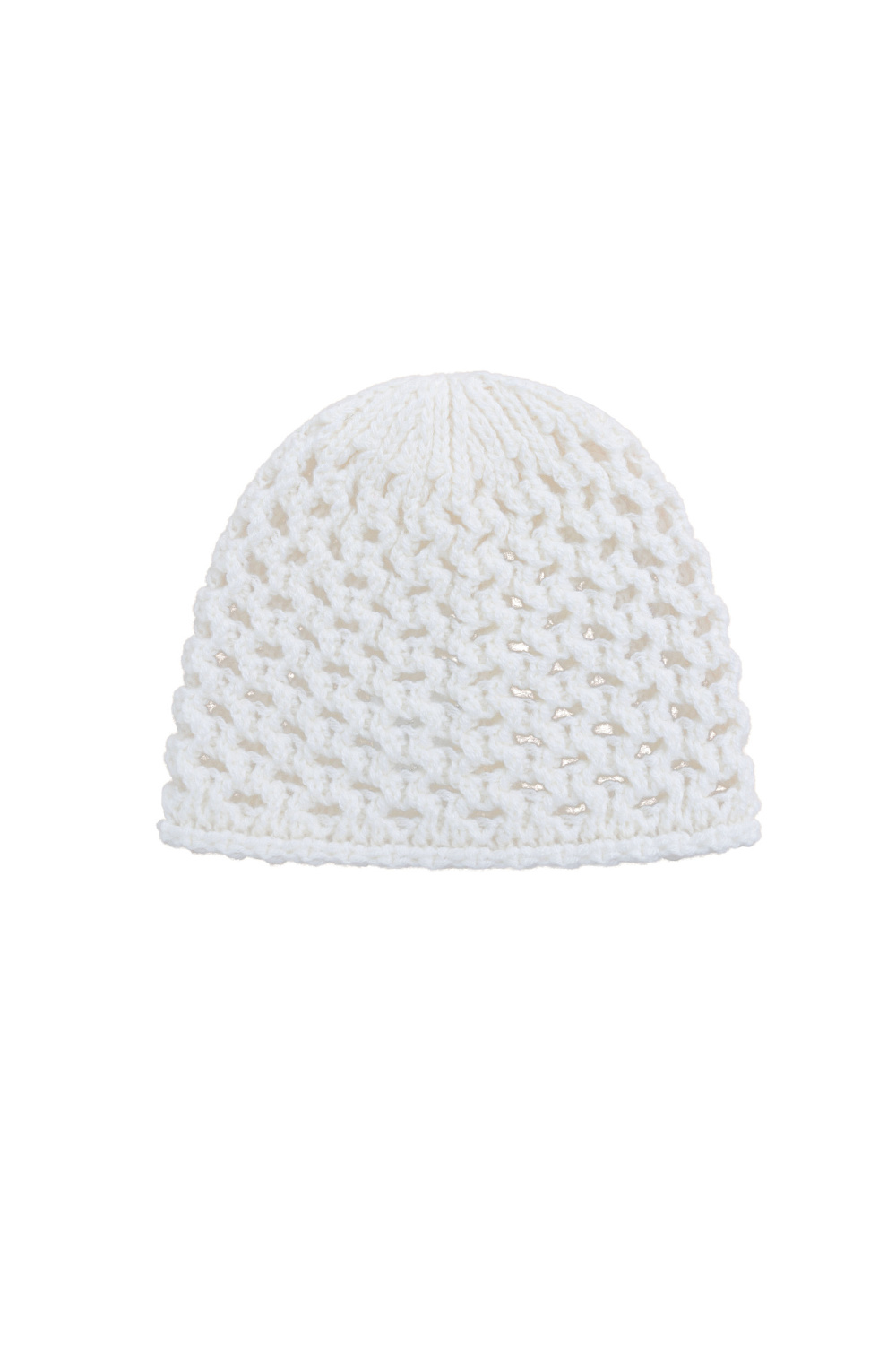 Knitted wool hat. The model is made of openwork weave with a turn-down.