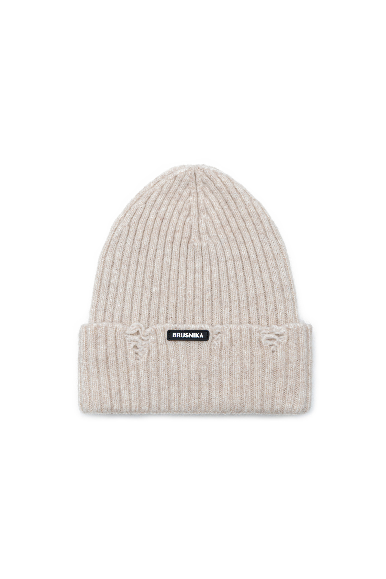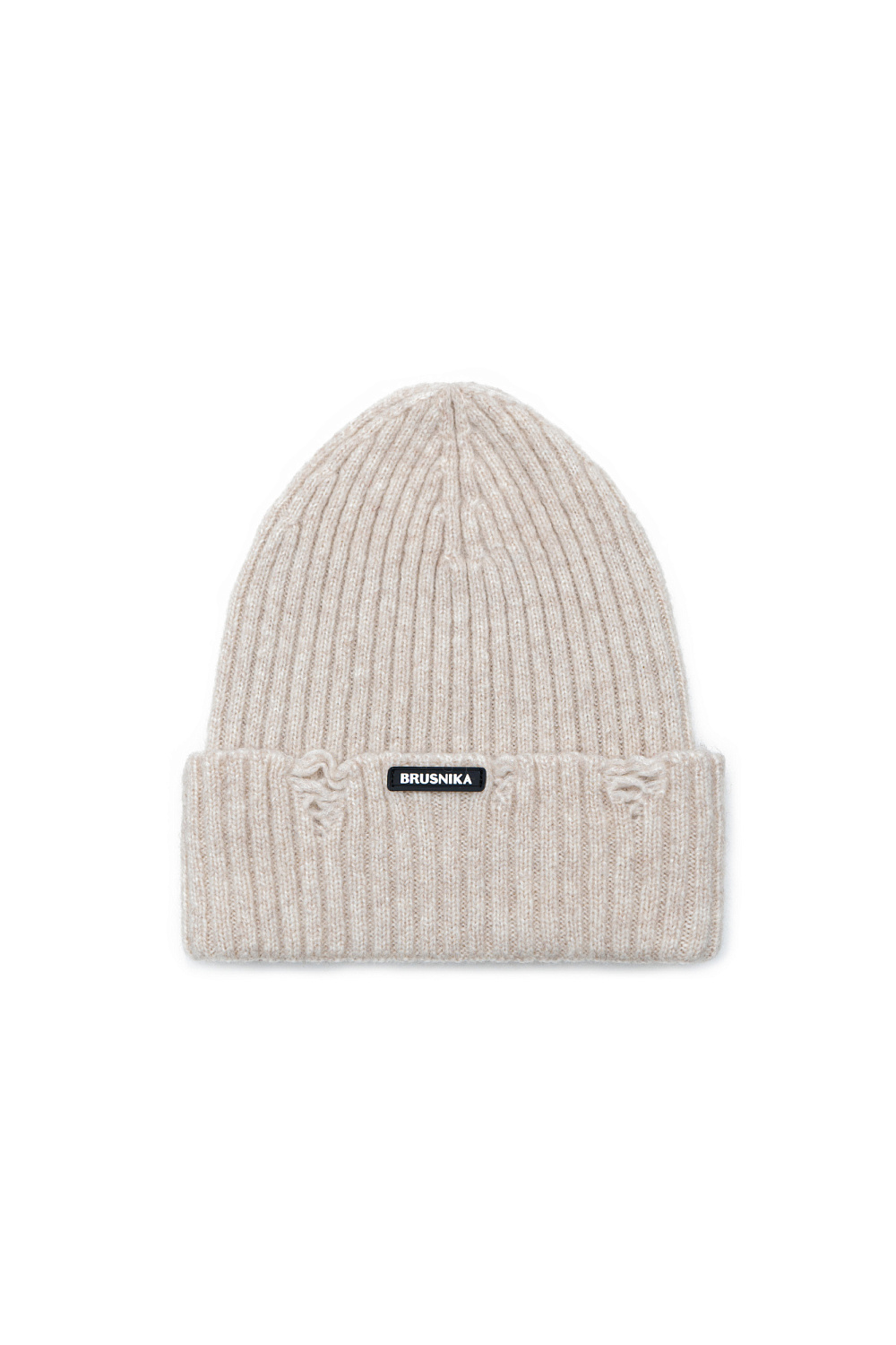 Knitted merino wool hat with logo and foldover cuff