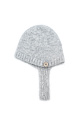 Knitted hat with button fastening. The hat is made of a blend of wool and mohair, ribbed edges.