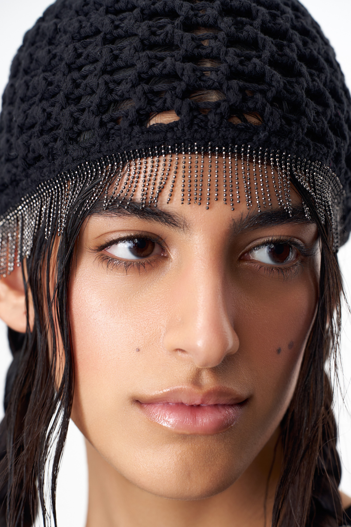 Openwork cotton hat with metallic fringe