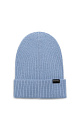 Knitted hat made of alpaca wool. Model with lapel and branded label.