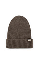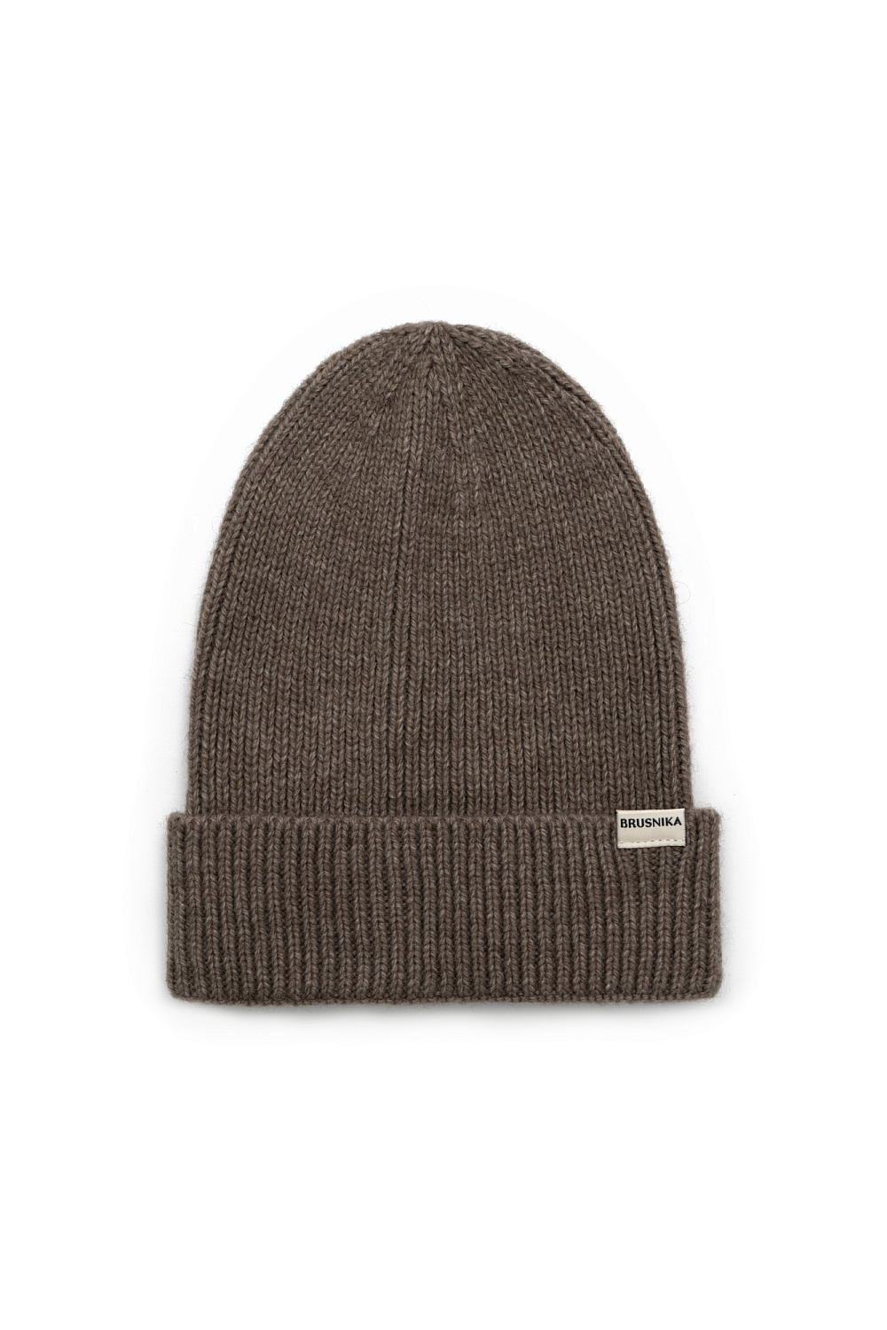 Knitted hat made of alpaca wool. Model with lapel and branded label.