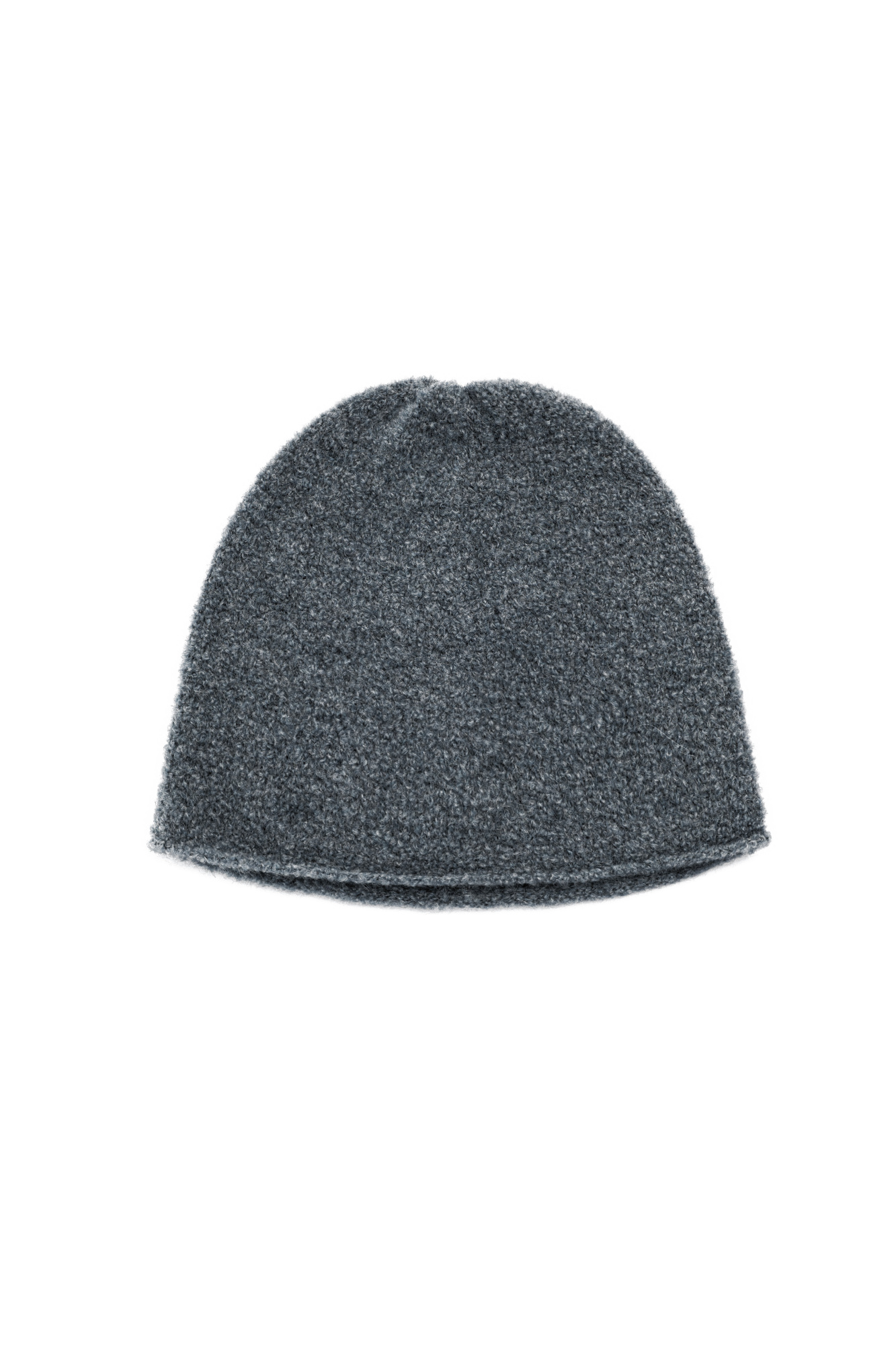 Knitted hat made of alpaca wool with the addition of mohair. The model is decorated with a roller along the bottom.