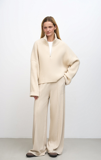 Knitted hat made of 100% cotton. Model with a high lapel.