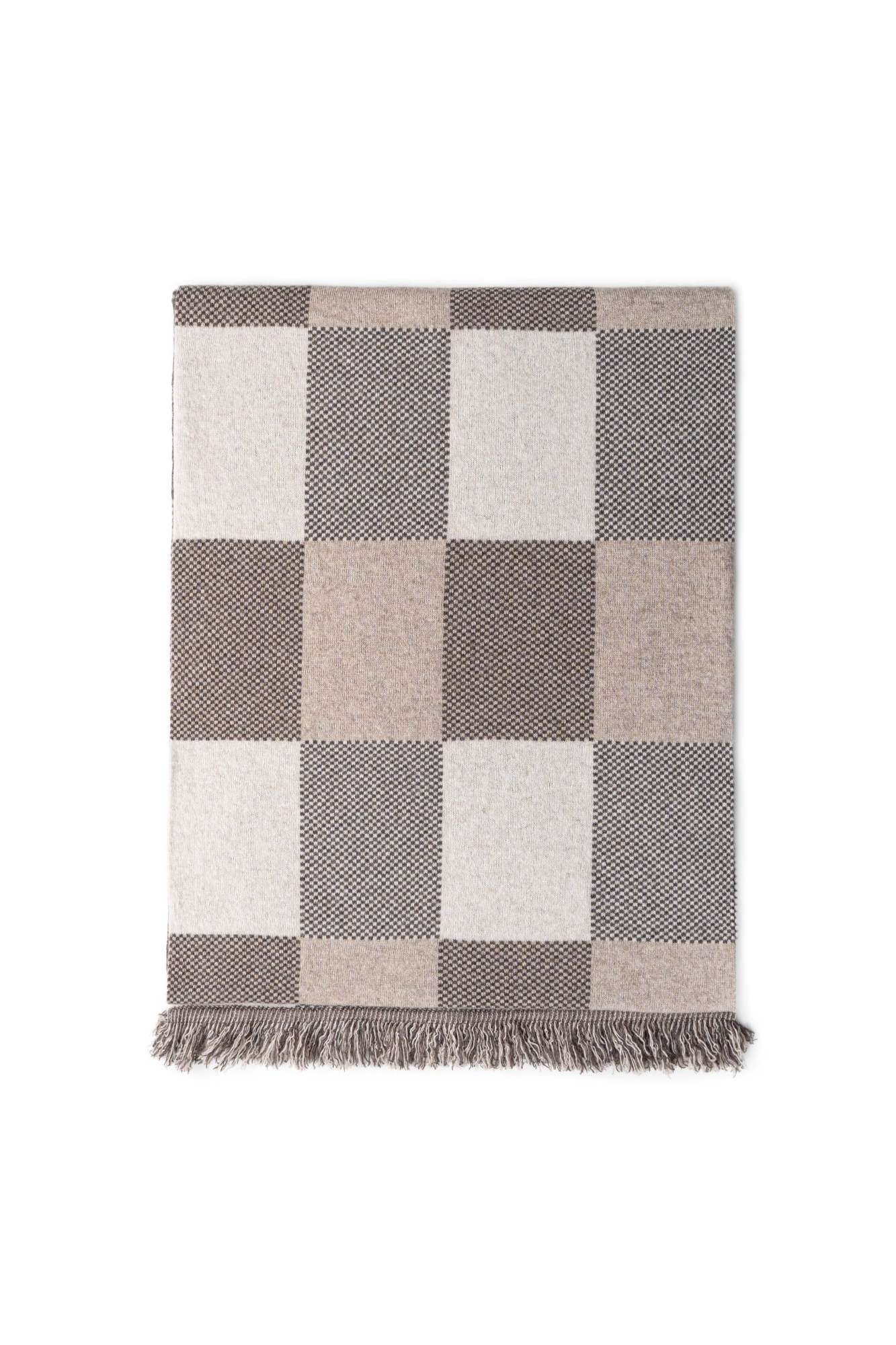 Cashmere checked stole with fringe trim