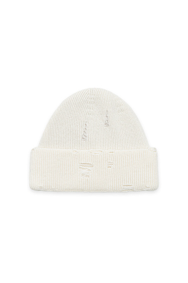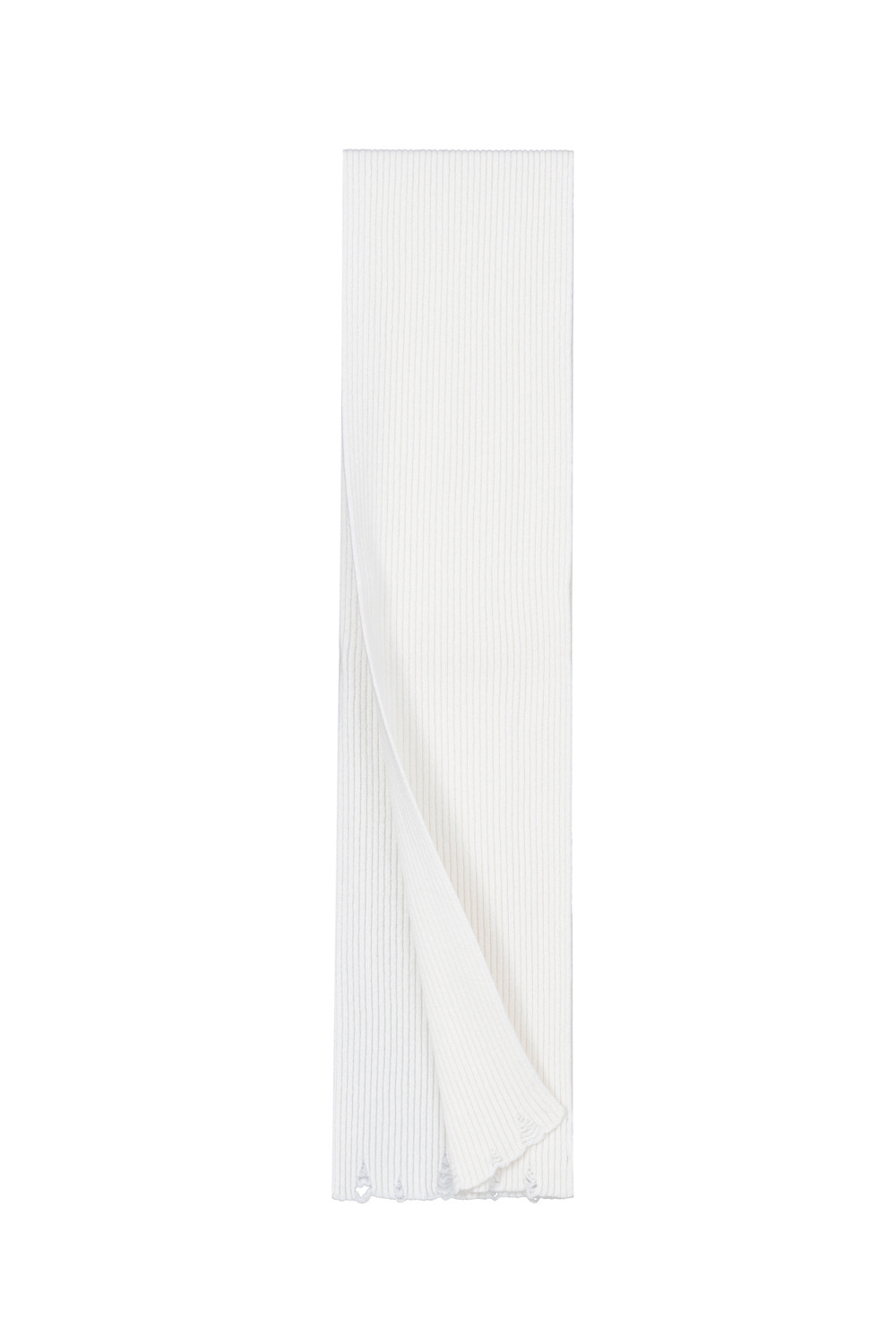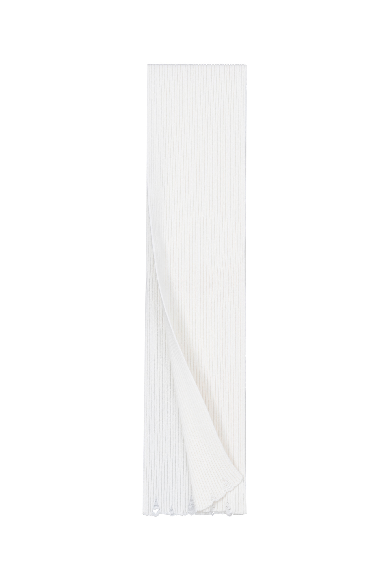 Merino wool knitted scarf with raw edge. You can complement the look with a matching hat.