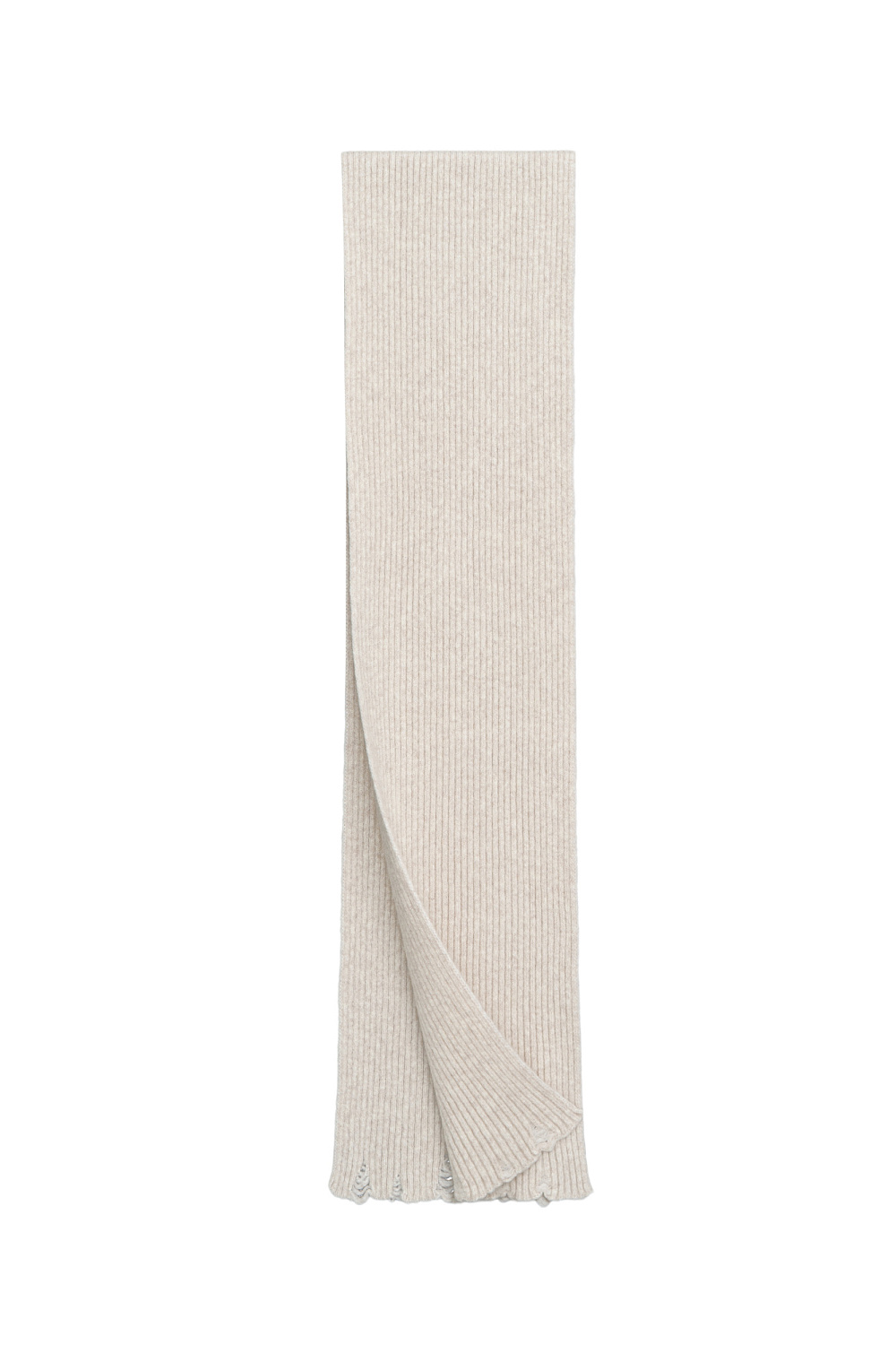 Merino wool knitted scarf with raw edge. You can complement the look with a matching hat.