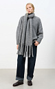 Wide scarf with fringe made of alpaca wool.