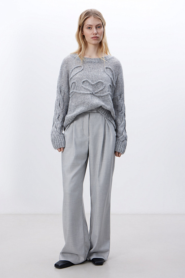 Knitted narrow scarf made of viscose with the addition of lurex.