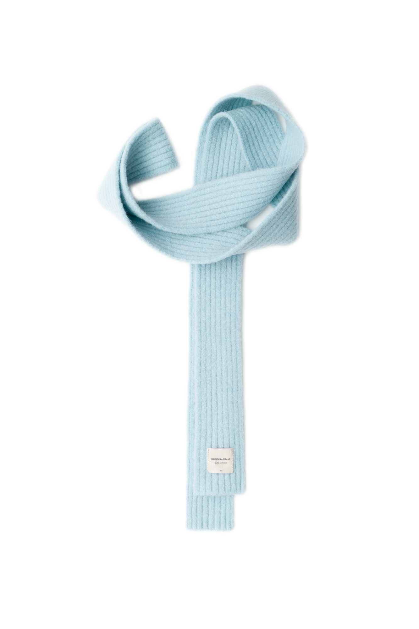 Knitted scarf made of wool with the addition of mohair. The product is made with rib. With branded label.
