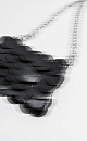 Handbag decorated with large black sequins. Model with a long chain strap. The height of the product is 9 cm, the length of the chain is 117 cm.