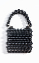 A handbag made by interlacing large round beads. Model with two handles and chain strap. The height of the product is 12 cm, the length of the handle is 11 cm, the length of the chain is 111 cm.