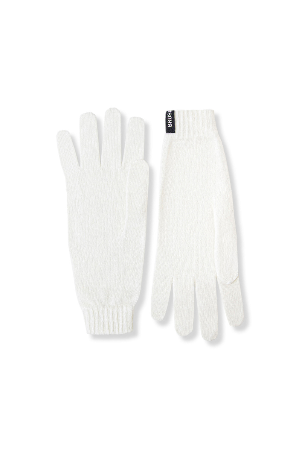 Gloves made of wool and cashmere. The product is decorated with narrow cuffs and a branded tag.