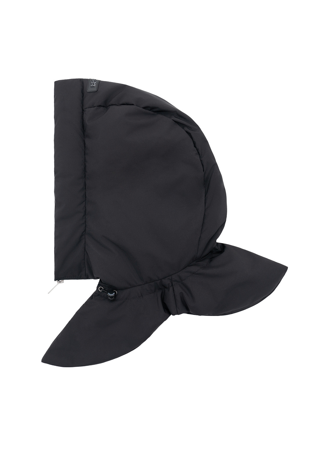 Hood with logo, zipper and drawstring with cord stoppers. Filling: natural down 90% feather 10%.