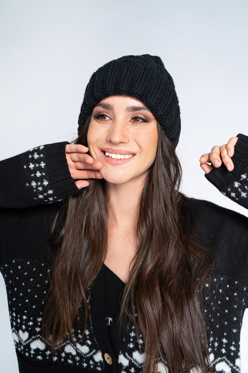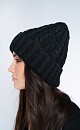 Alpaca wool cable knit hat with a wide turn-up at the hem.