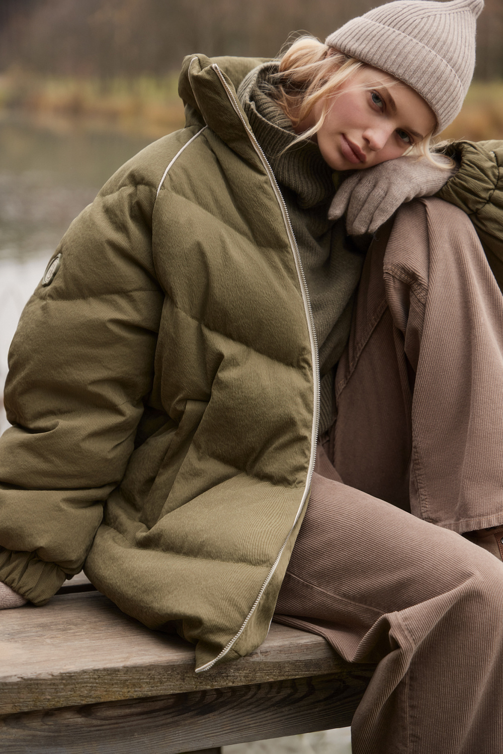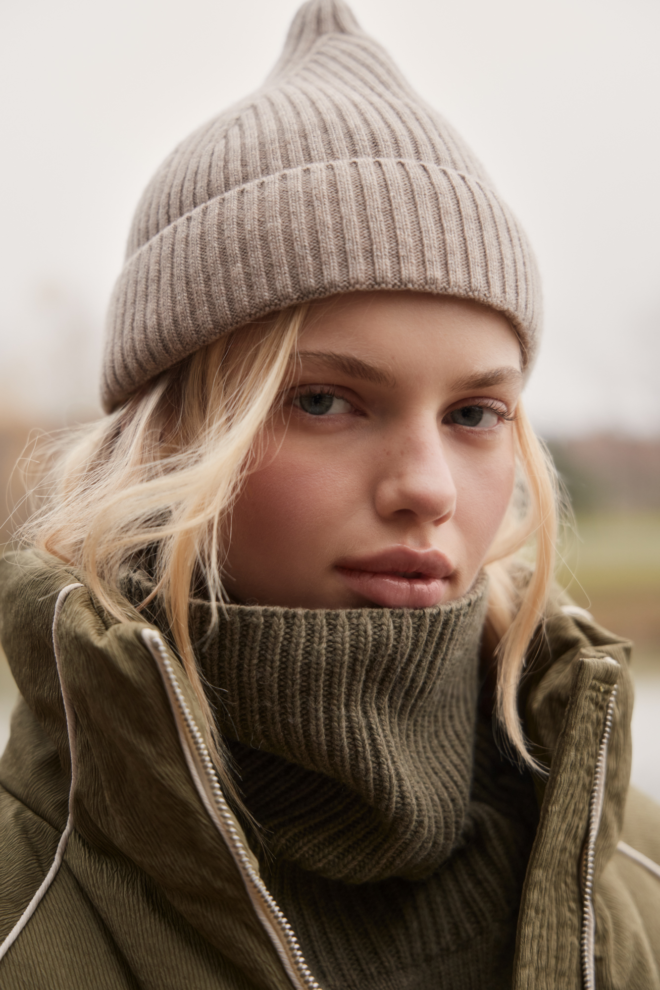 Knitted hat with a lapel. Made from a wool blend with cashmere added.
