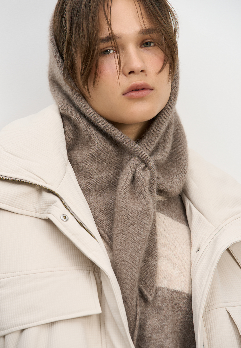 Knitted scarf made of fox fluff.