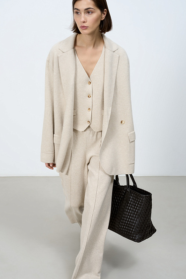 Knitted hat made of alpaca wool. Model with lapel and branded label.