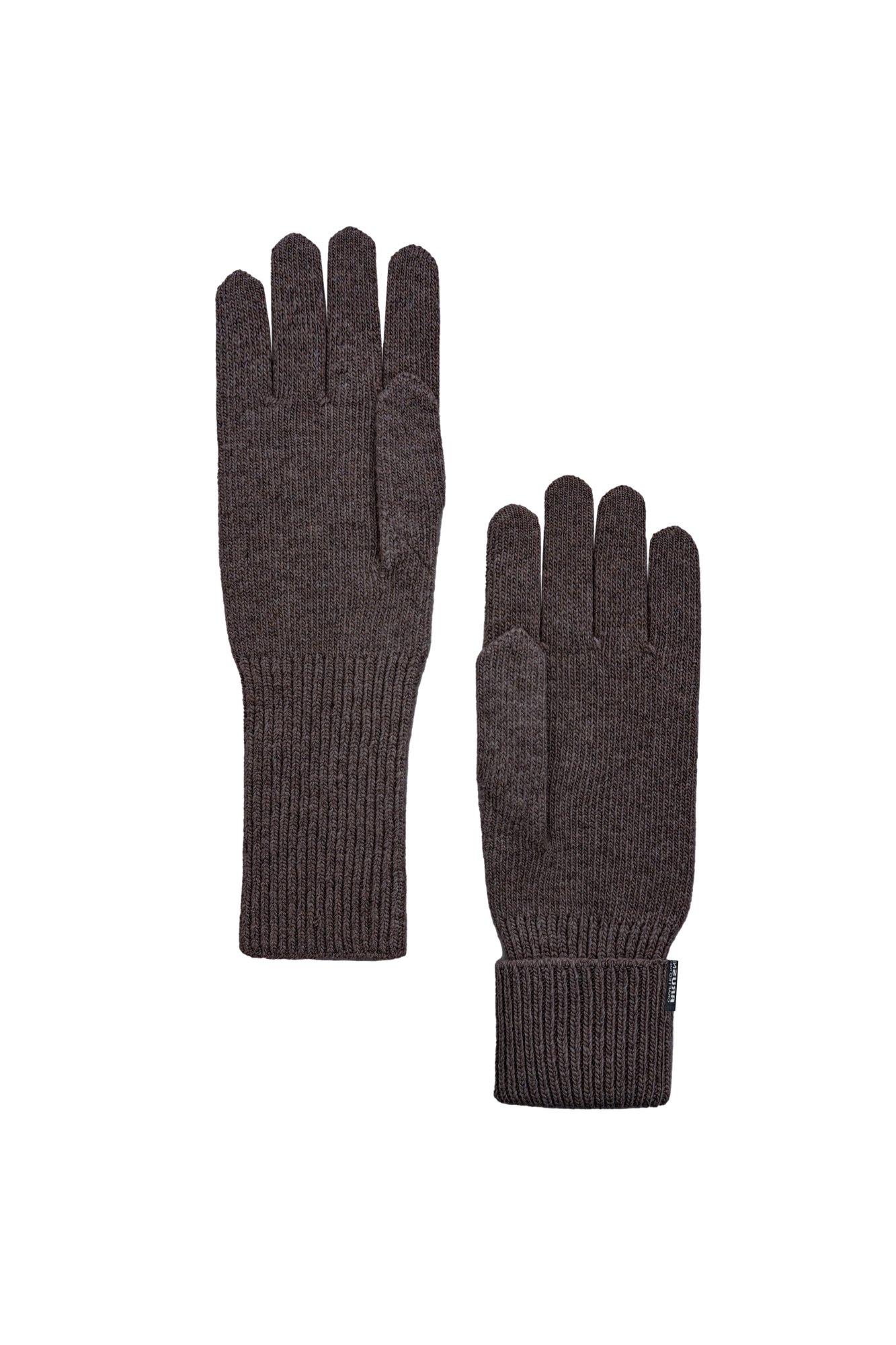 Knitted gloves made of cashmere and wool. Model with long cuffs and branded label.
