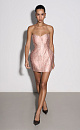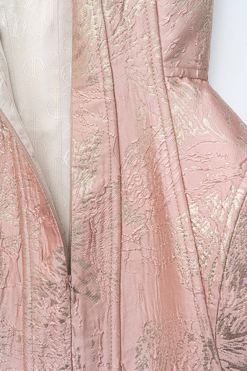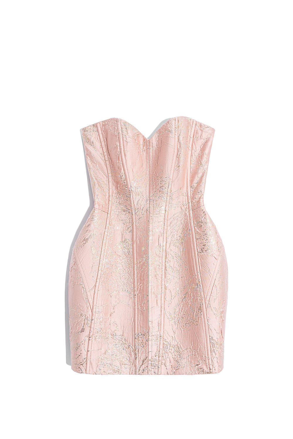 Mini-length dress made of jacquard. Model with a corset top and a figured neckline. Concealed zip fastening at the back. The product is lined.