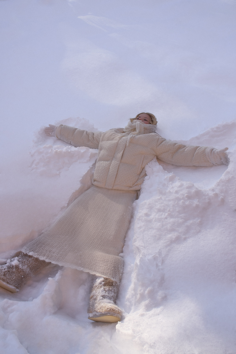 Openwork maxi length mohair skirt. A-line model with elastic waistband. The product is made without lining.