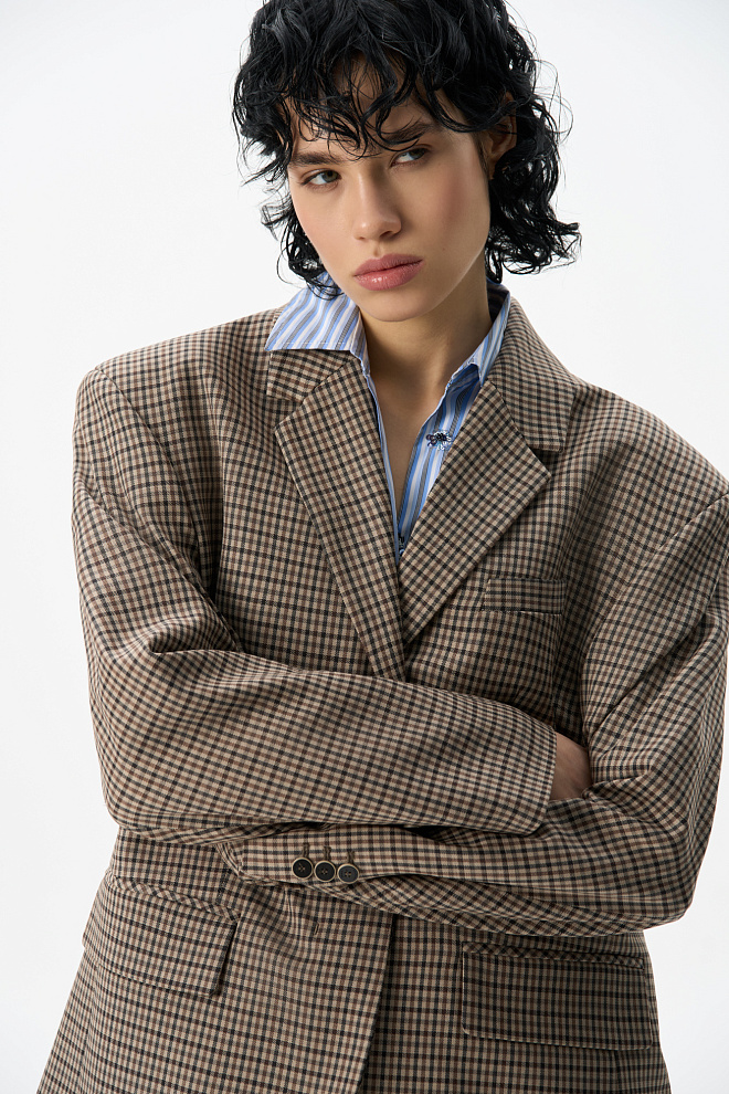 Single-breasted gingham jacket