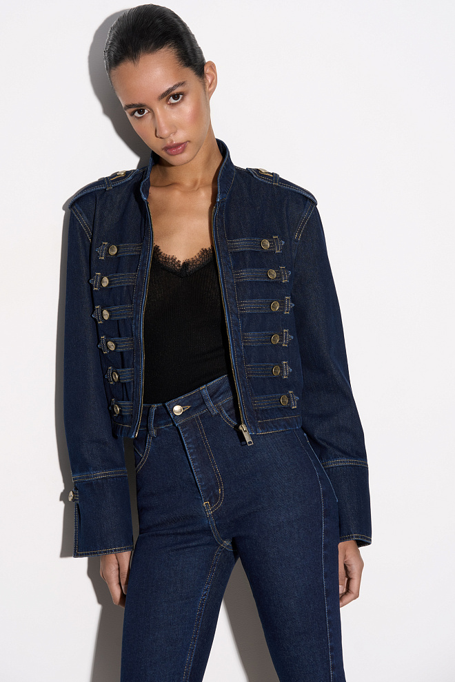 Short jacket with a denim insert