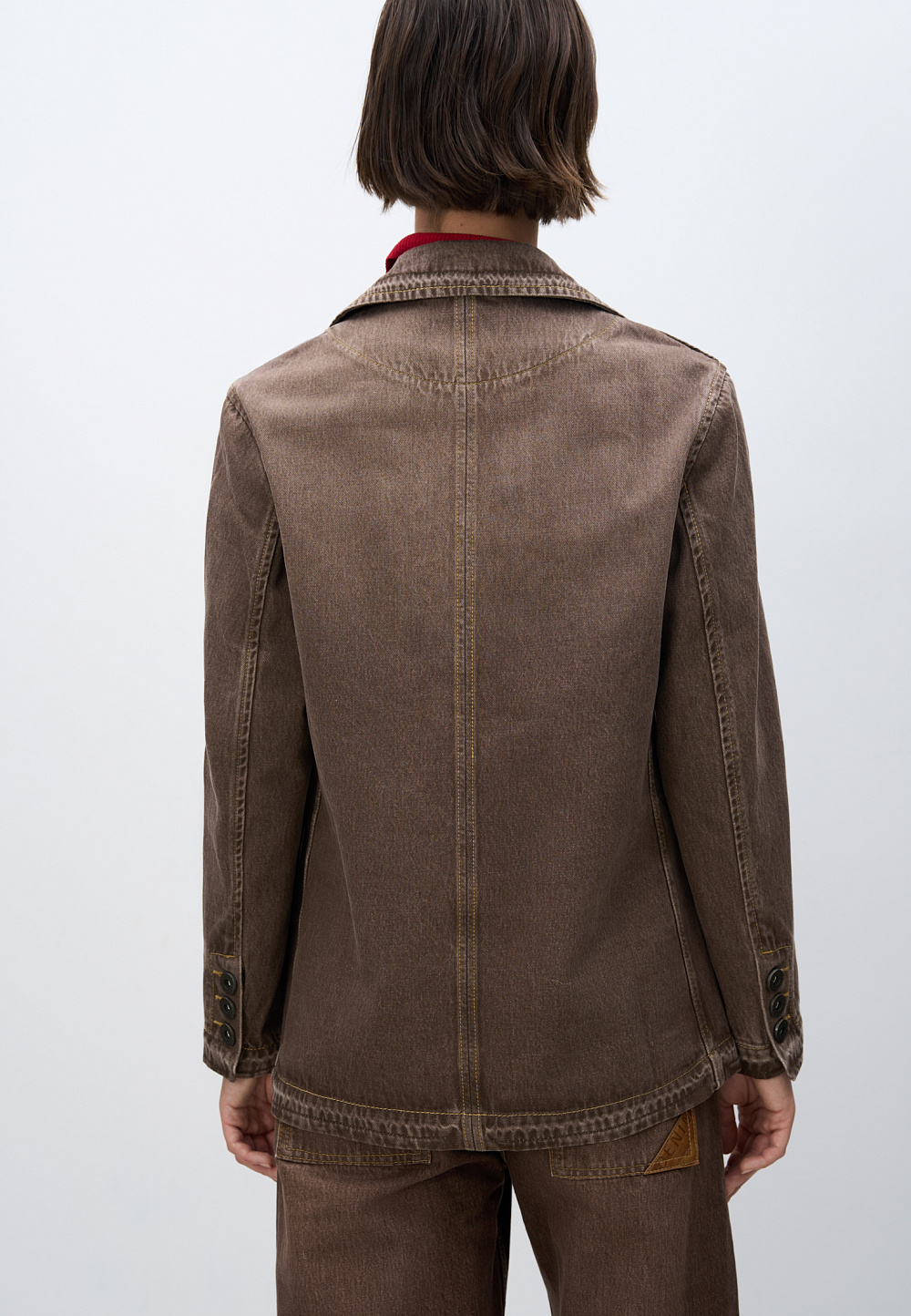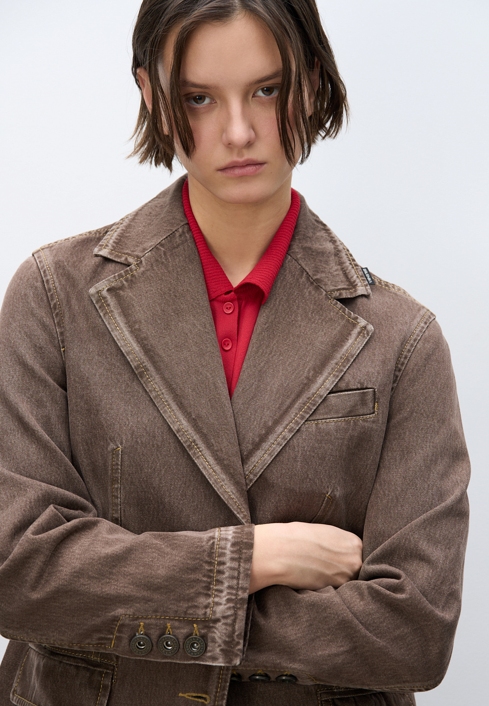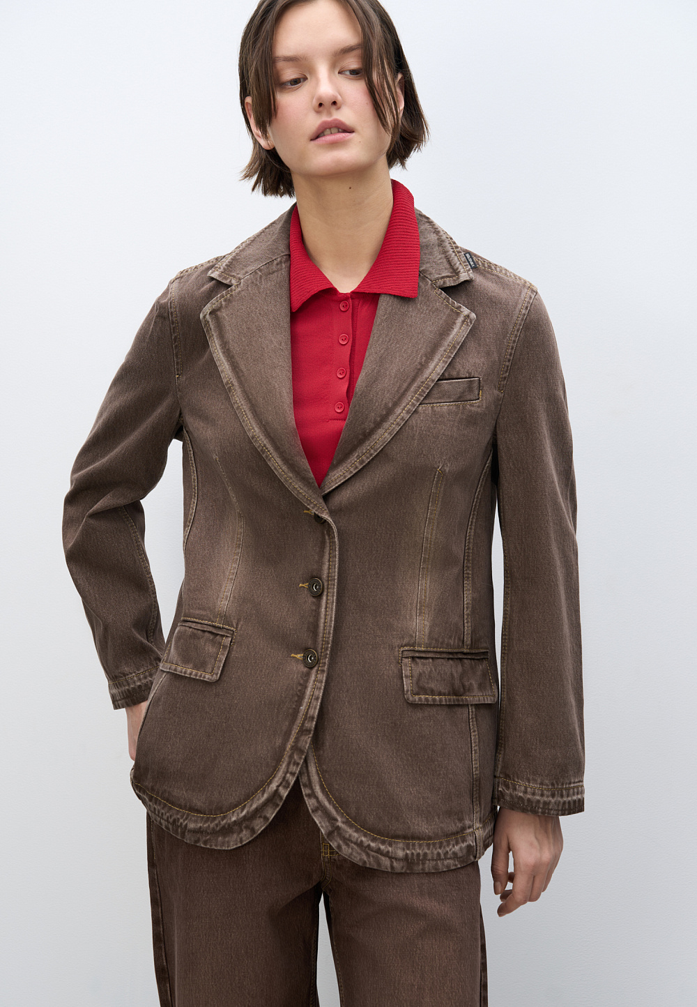 Denim jacket made of 100% cotton. Straight-fit model with a classic English collar, side pockets with flaps, a chest pocket and buttons on the cuffs. Fastening with three metal buttons. The product is unlined.
