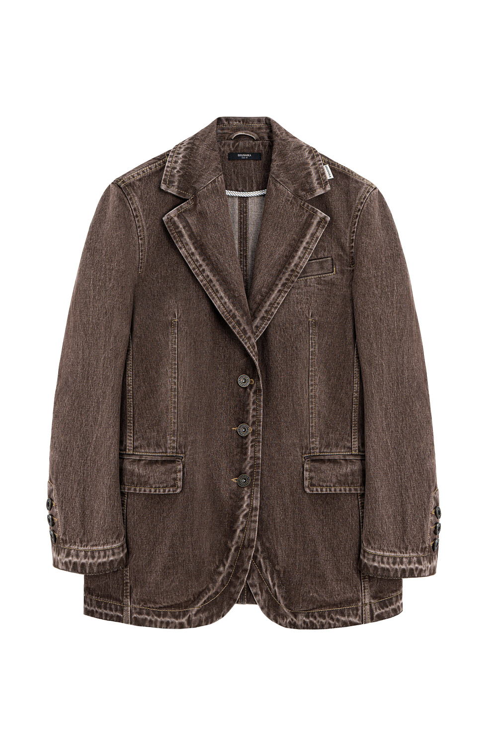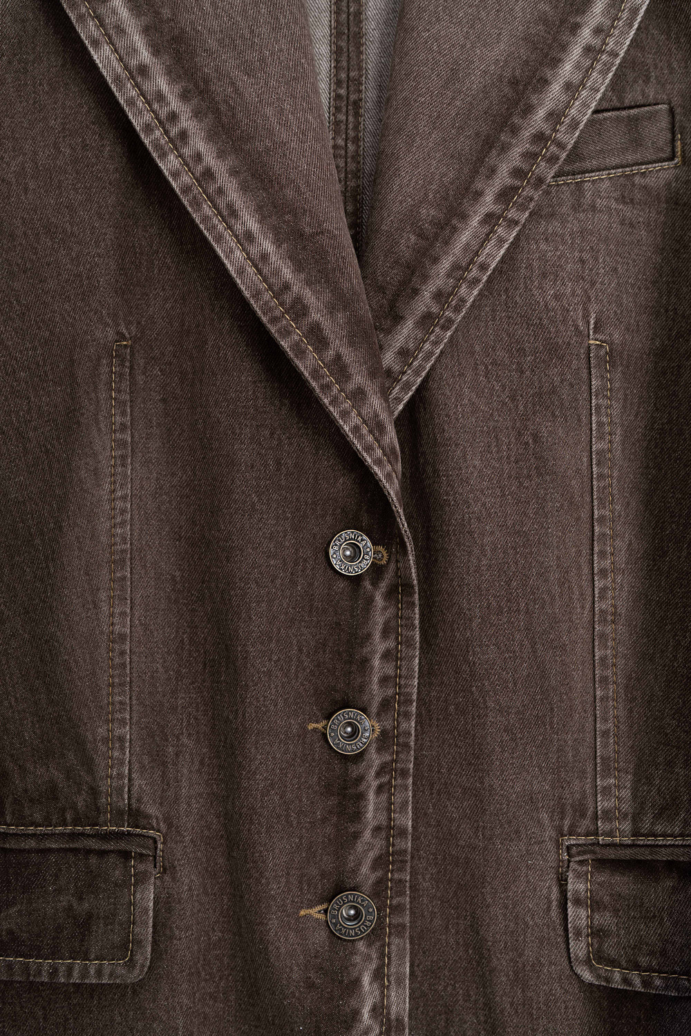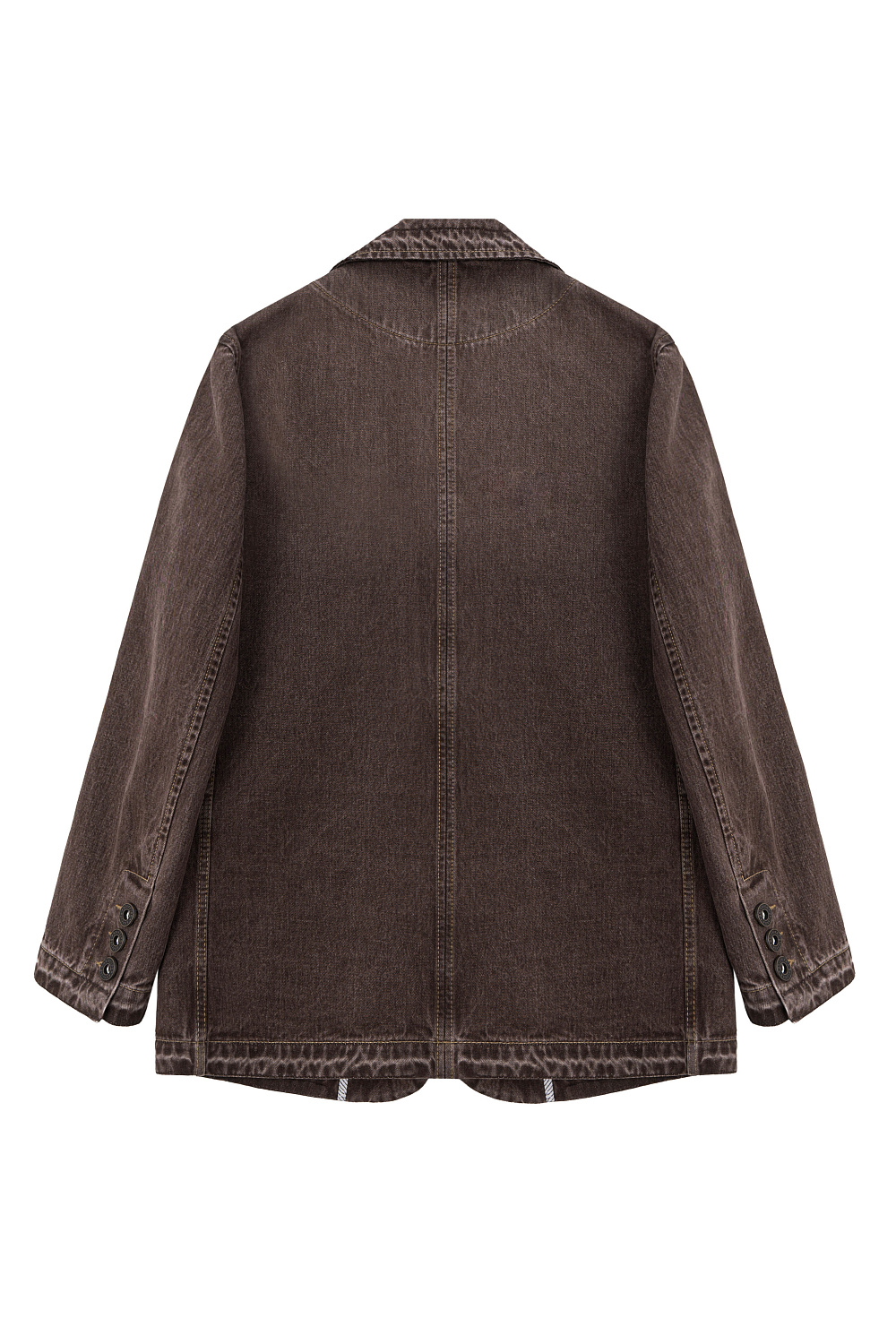 Denim jacket made of 100% cotton. Straight-fit model with a classic English collar, side pockets with flaps, a chest pocket and buttons on the cuffs. Fastening with three metal buttons. The product is unlined.