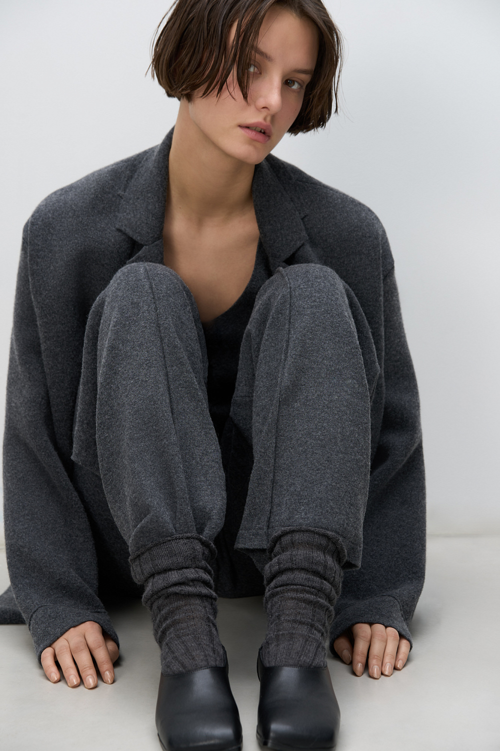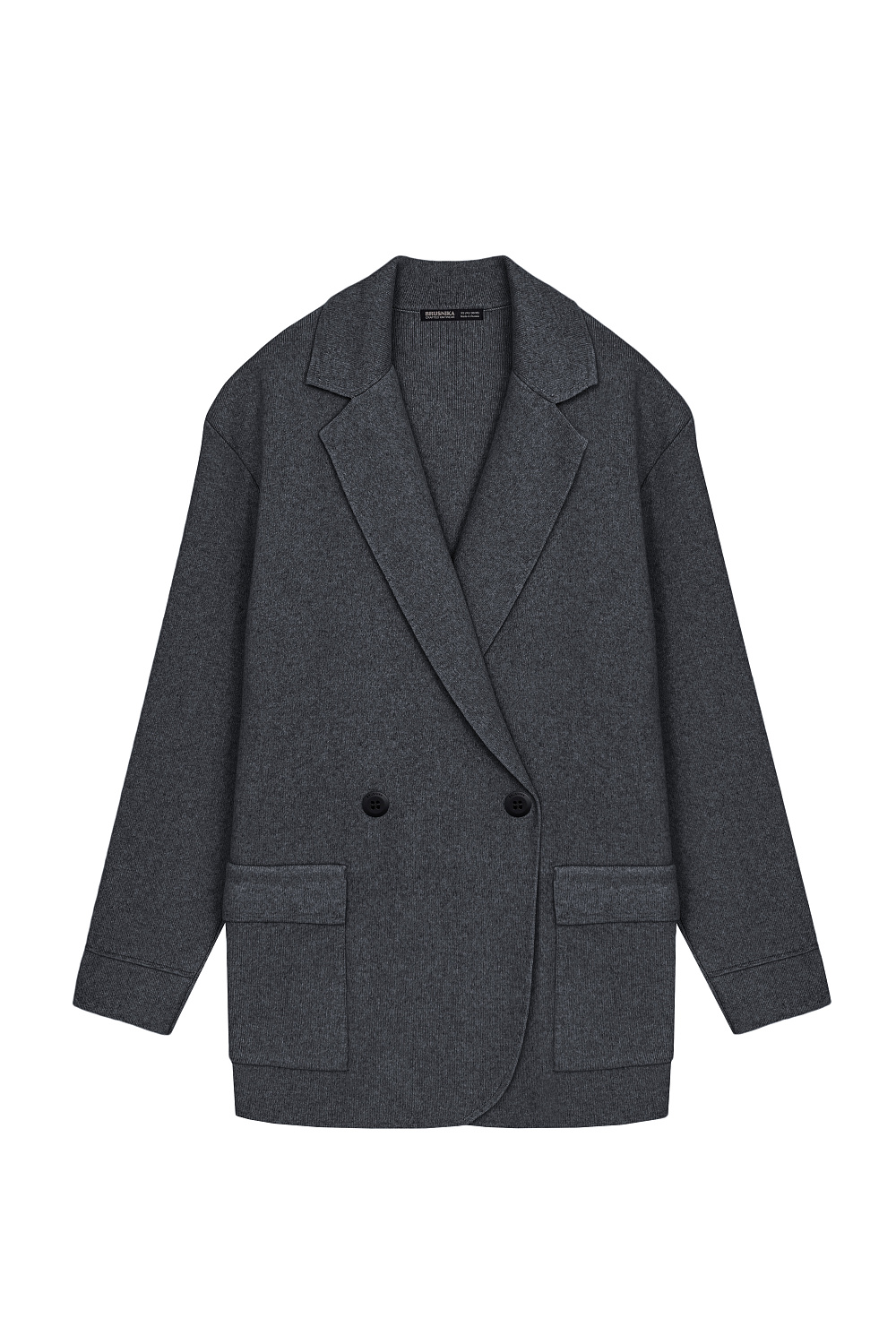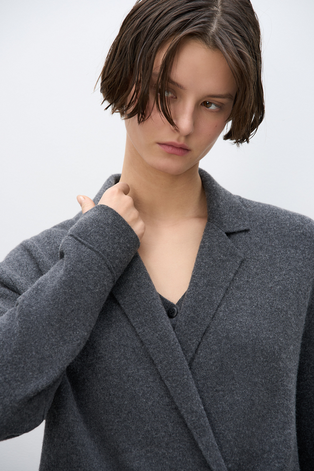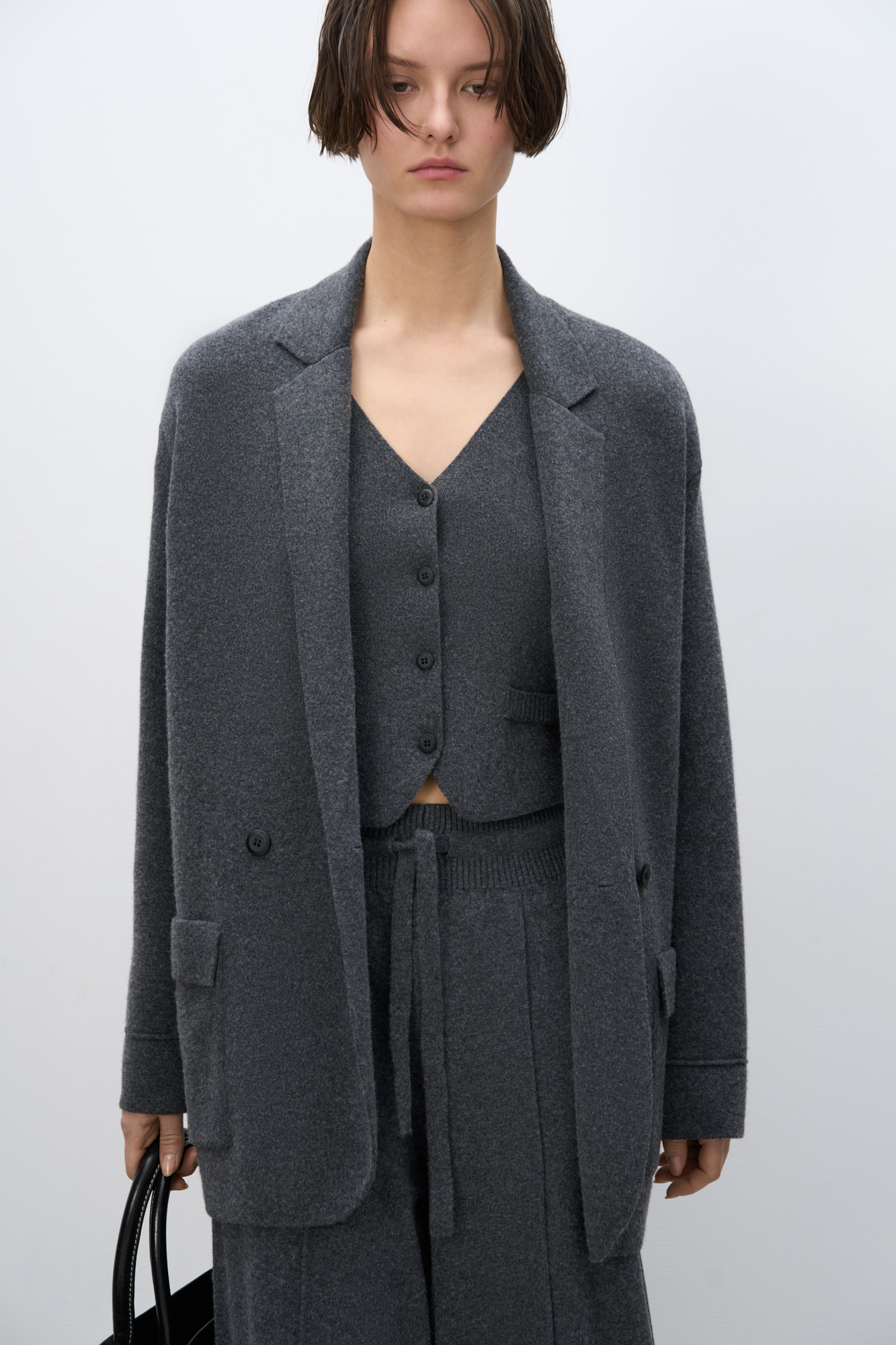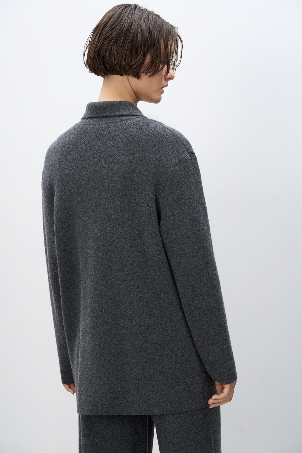 Knit blazer made of a wool and cashmere blend. Straight-fit silhouette with notch lapels and front patch pockets. Unlined.