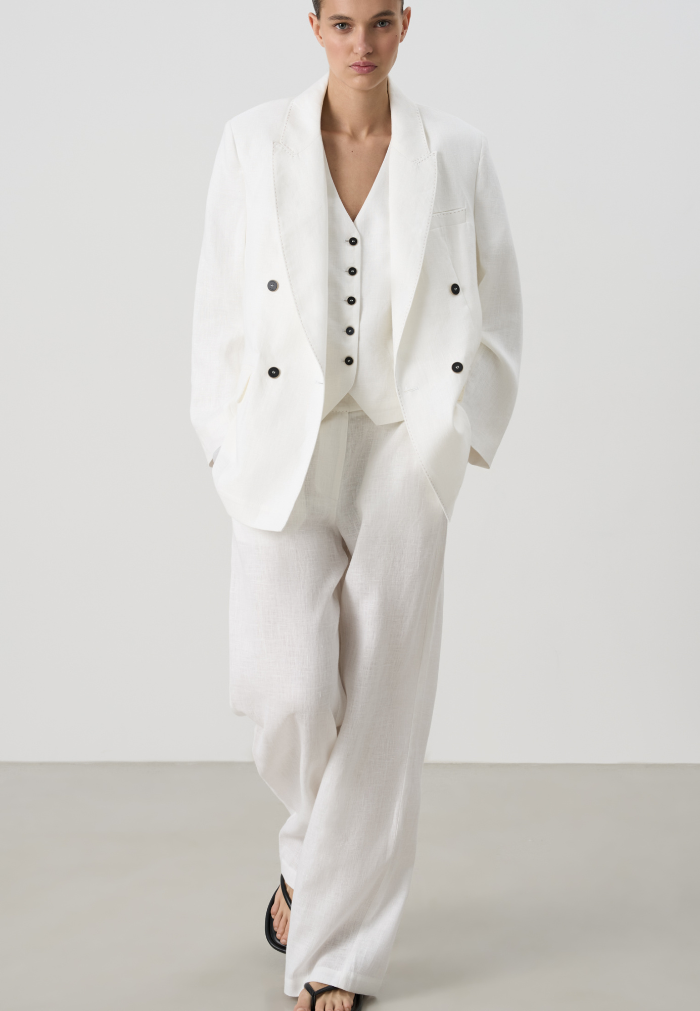 Double-breasted jacket made of 100% linen
