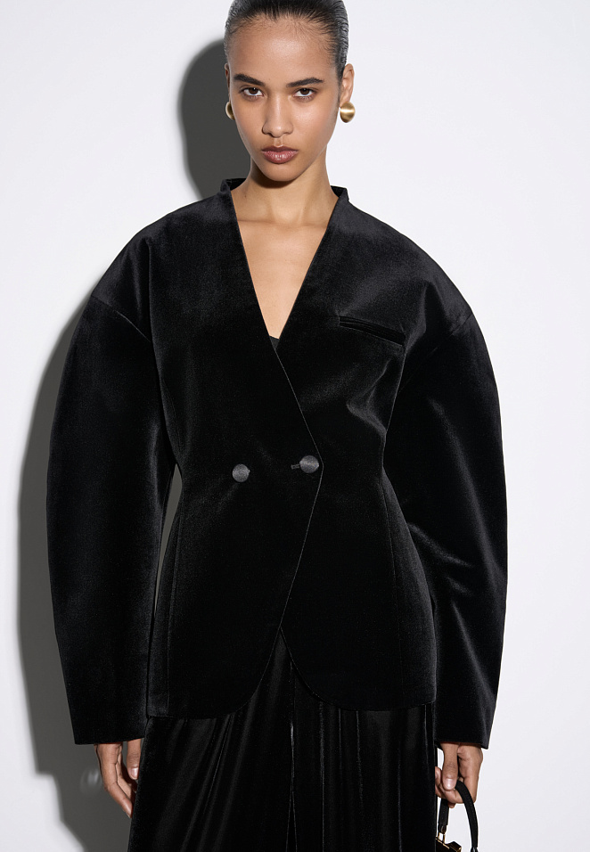 Velvet jacket with voluminous sleeves