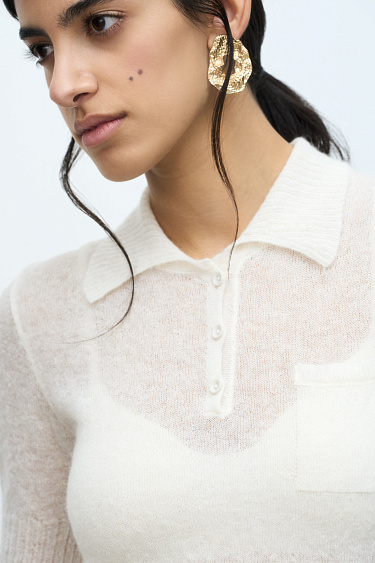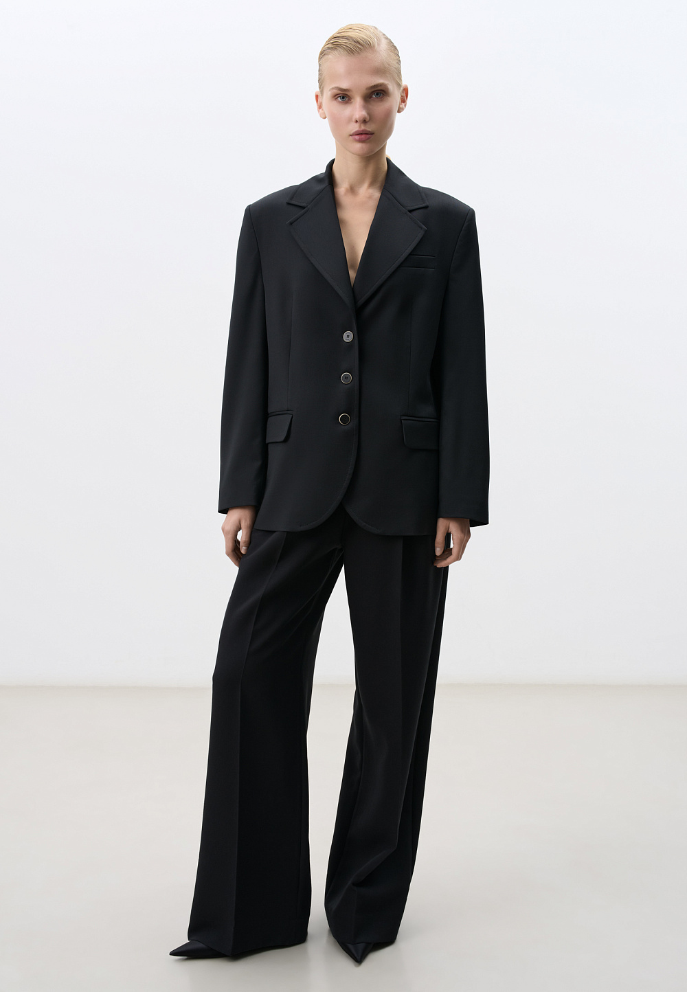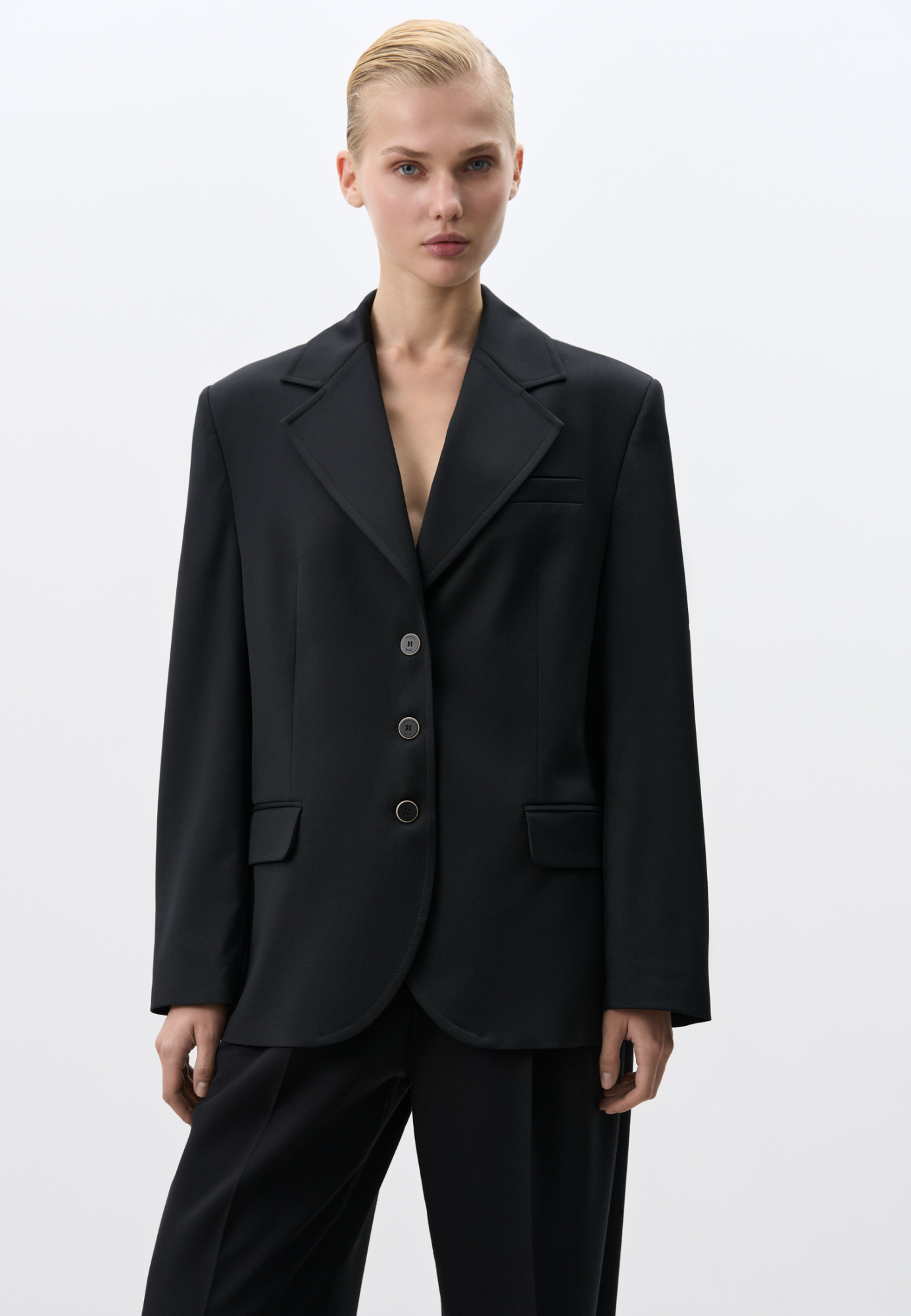 Single-breasted wool jacket. Relaxed silhouette with lapels, side pockets with flaps and a chest pocket. Three button closure. The product is lined. You can complement the look with trousers or a skirt.