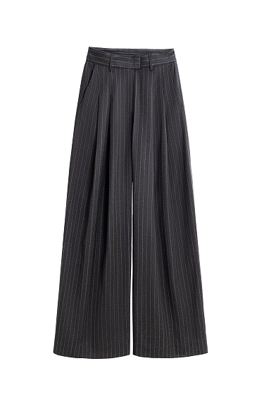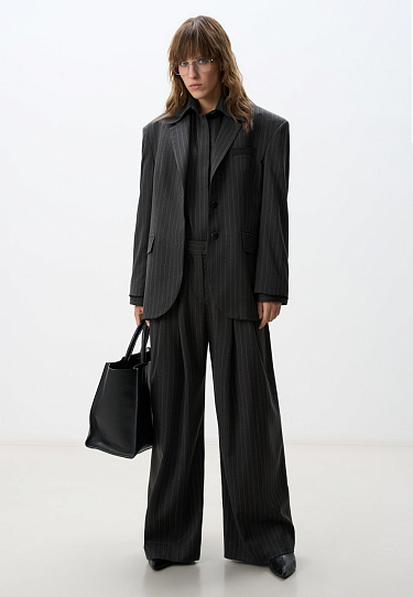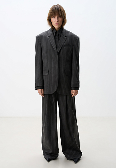 Single breasted striped jacket. Straight cut model with narrow lapels, chest pocket, side pockets with flaps and buttons on the sleeves. Fastening with hidden buttons under the placket. The product is lined.
