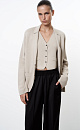 Single-breasted classic jacket in merino wool blend. Snap button closure and patch pockets.
