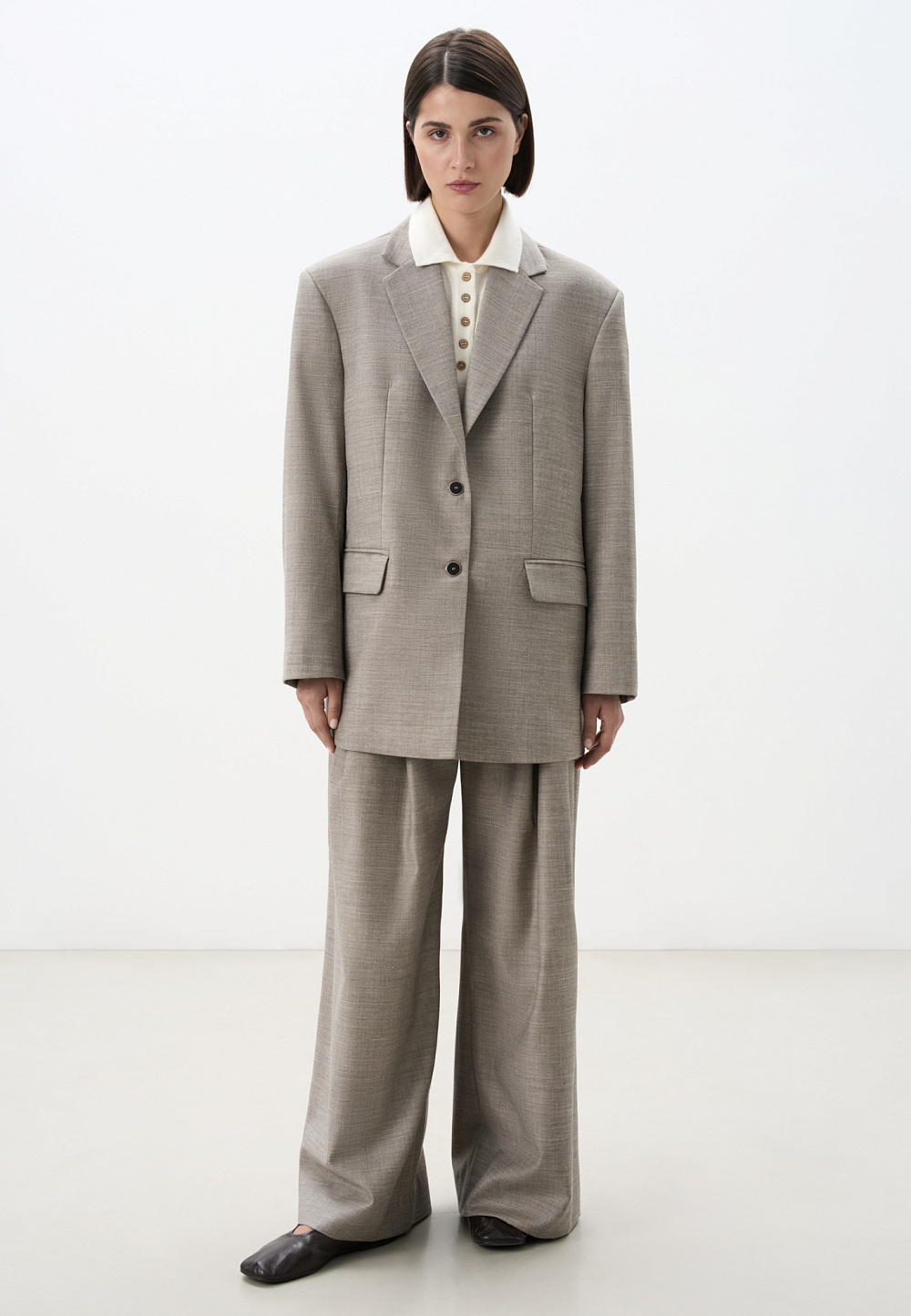 Classic flannel jacket. Straight fit model with lapels and welt pockets with flaps. Two button closure. The product is lined.