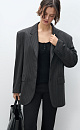 Single breasted striped jacket. Straight cut model with narrow lapels, chest pocket, side pockets with flaps and buttons on the sleeves. Fastening with hidden buttons under the placket. The product is lined.