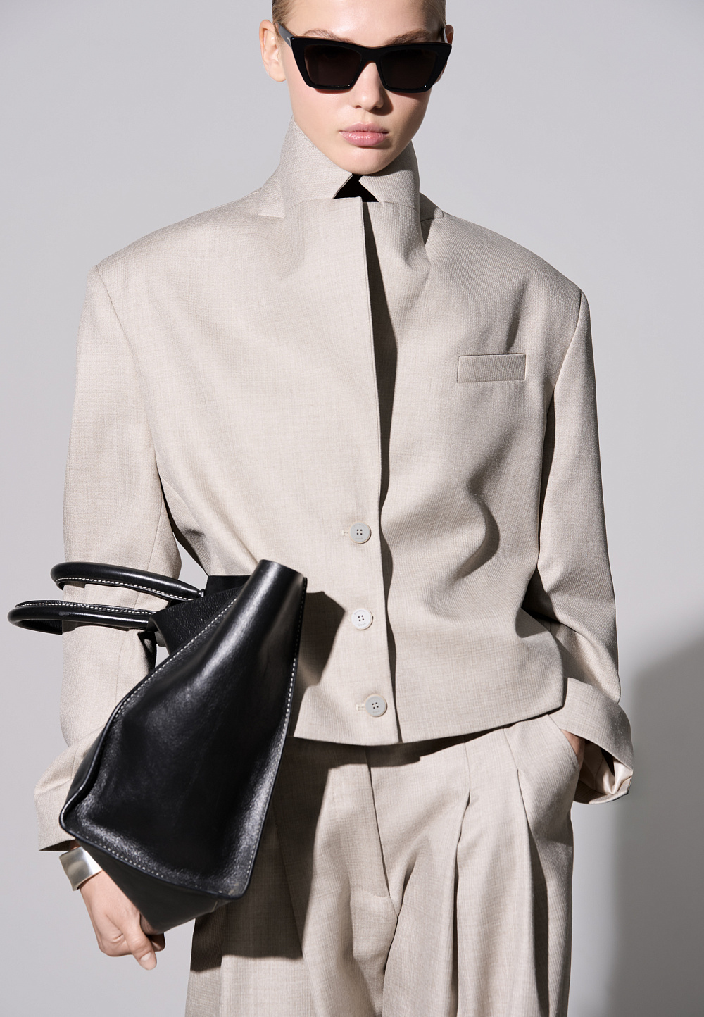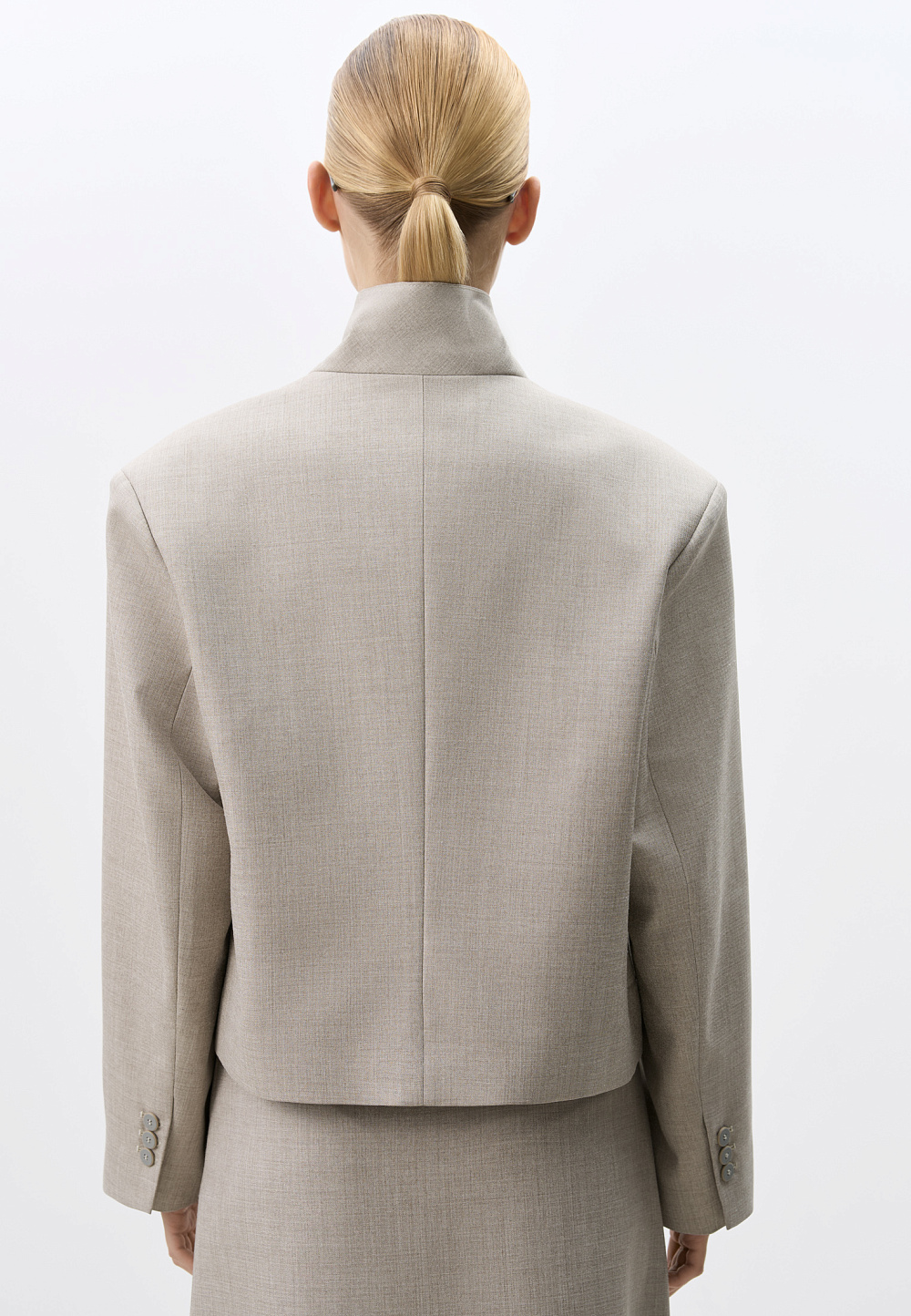 Cropped jacket in wool blend. Straight-fit model with a classic turn-down collar, a pocket on the chest and buttons on the cuffs. The product is lined. Button closure.
