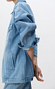 Oversized straight-fit denim jacket. Turn-down collar, long sleeves with buttoned cuffs. Patch pockets on the chest and side pockets on the front. Button fastening.