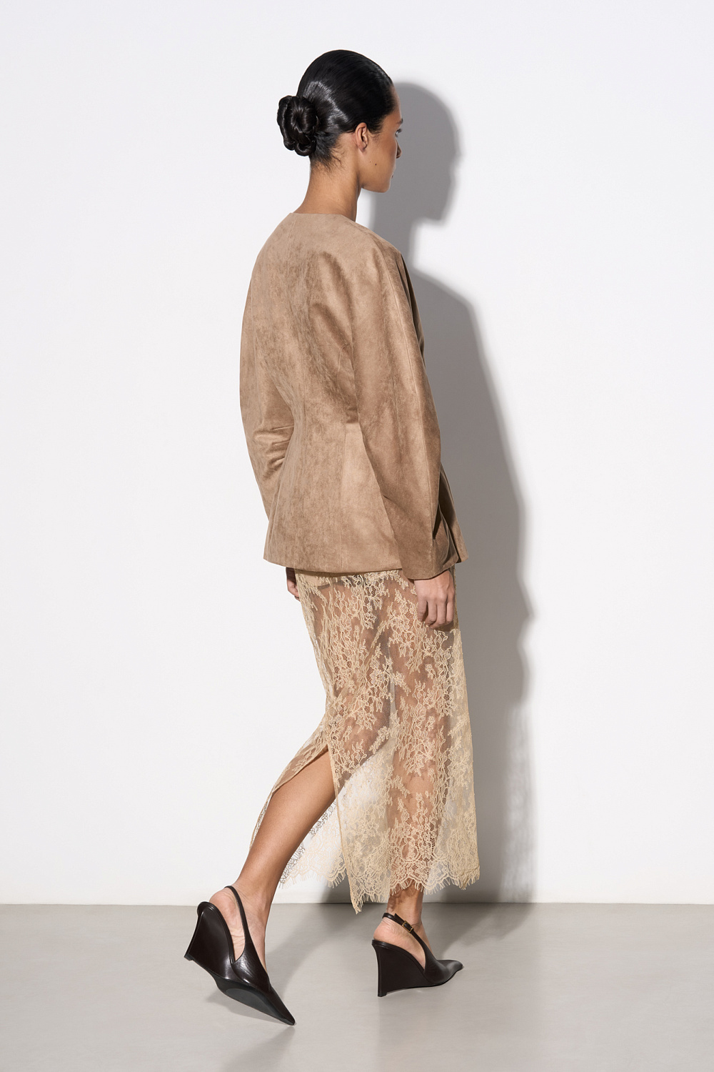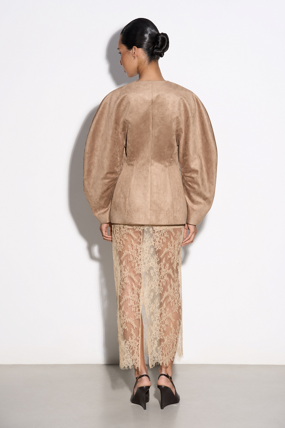 Jacket with voluminous sleeves and suede trim